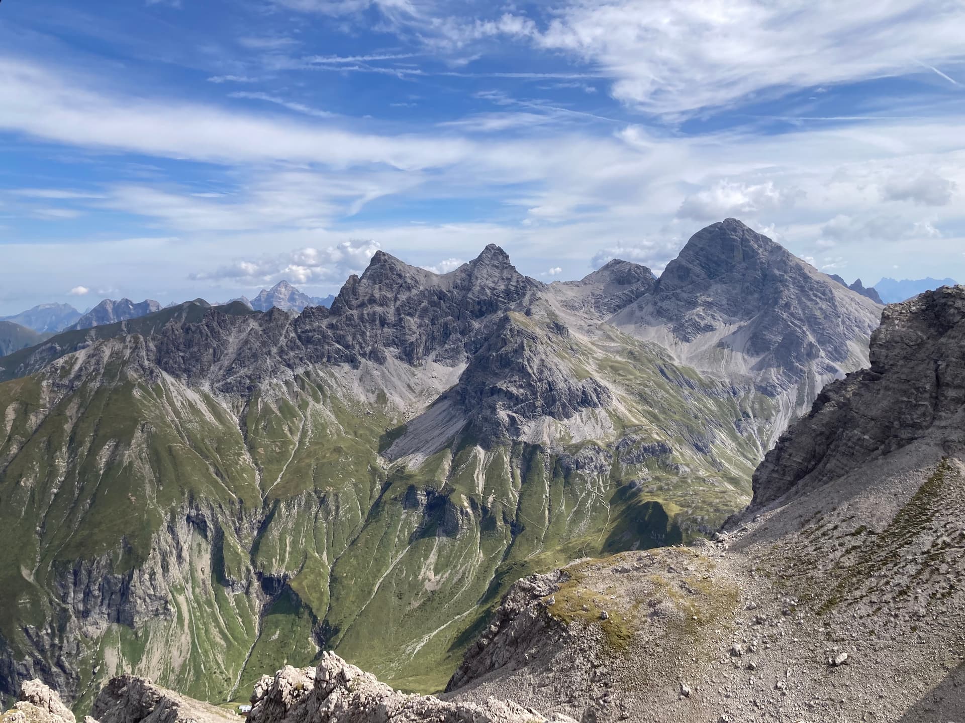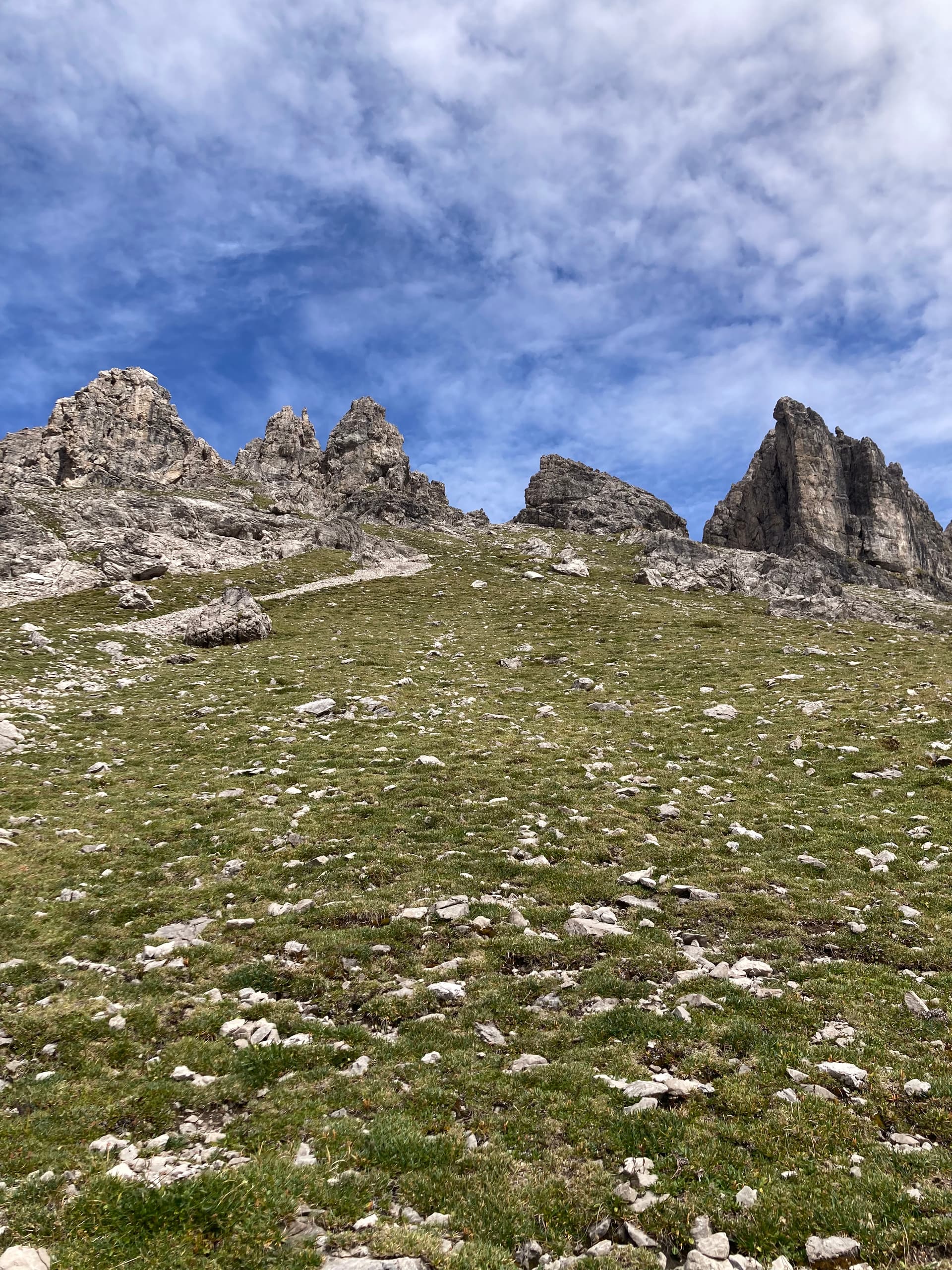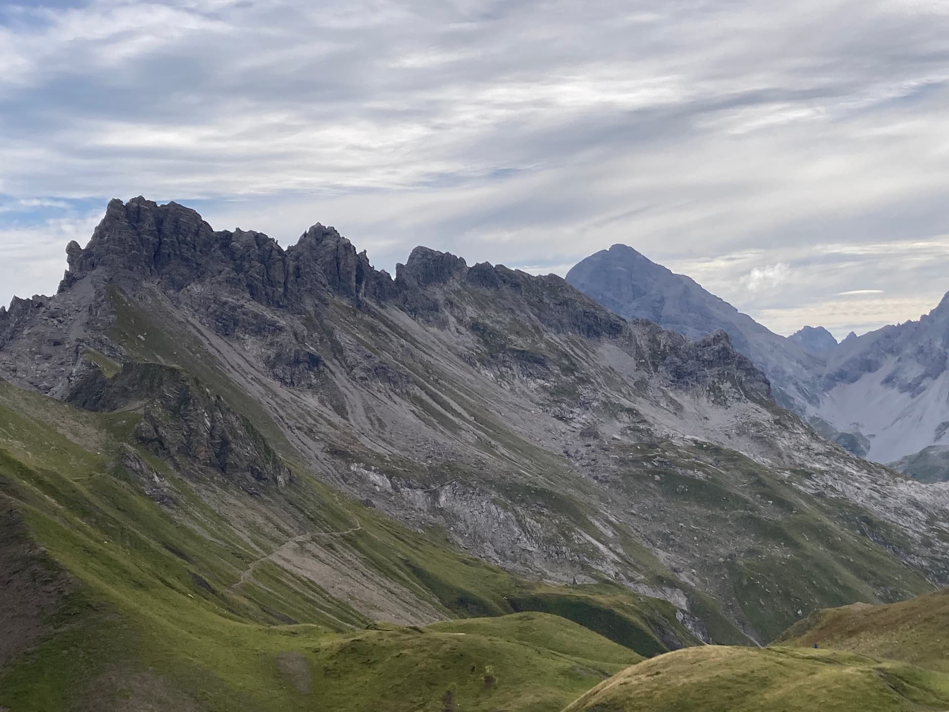 This was the highest point of the day. From here, I followed Heilbronner Weg that led slowly but steadily downhill. The descent was uneventful and took about 90 minutes until I left the hiking trail and went up again without a track. Once again it was steep grass and scree…