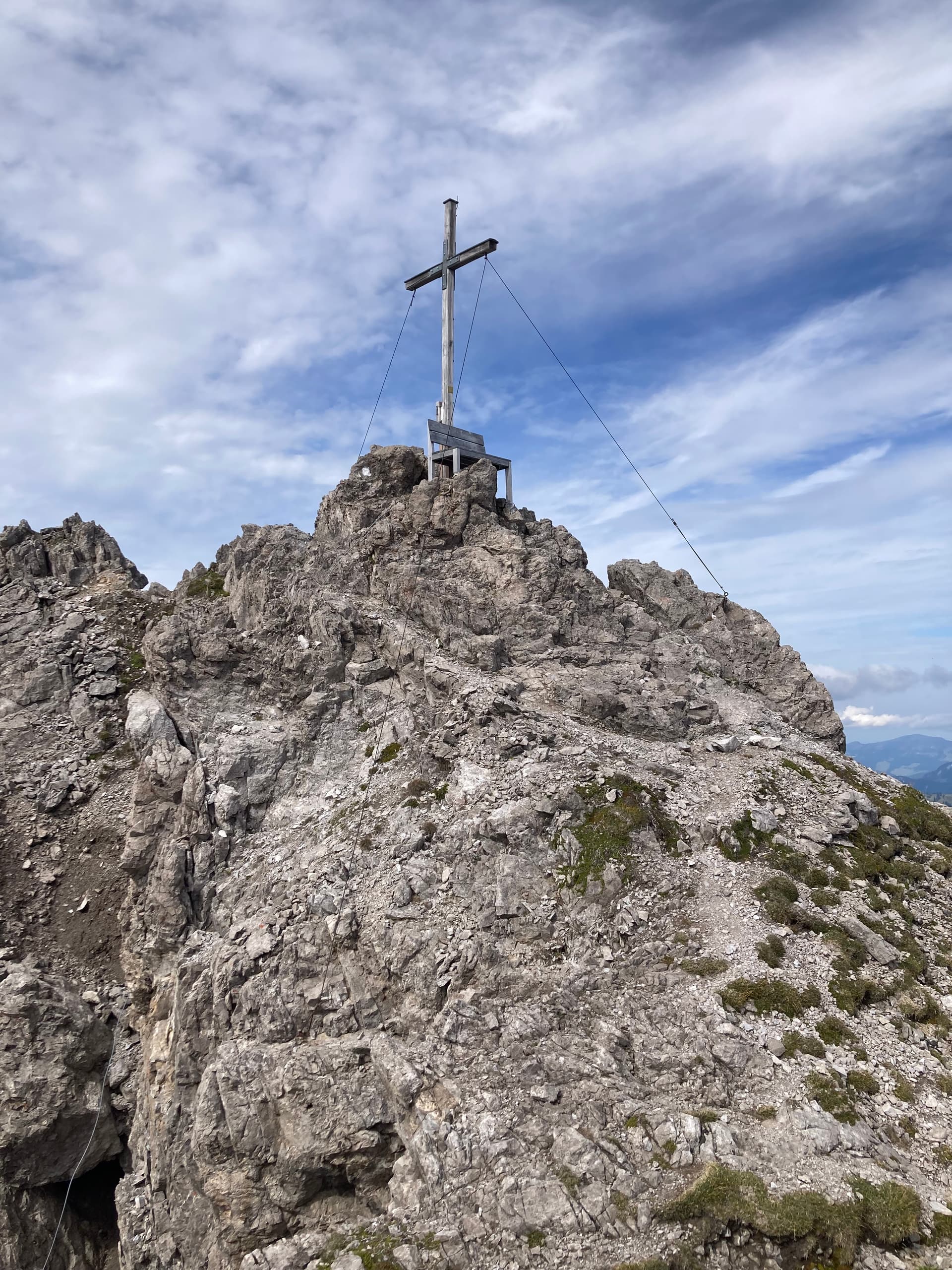 I was a bit concerned about the difficulty of the remaining part but it didn’t get any worse. Just a little scramble here and there and finally, the summit cross came into sight.