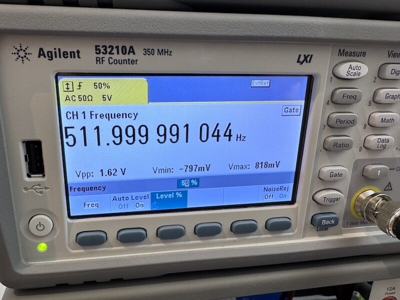 Attention has also been given to detail – here is the (prescaled /64 = 512 Hz) RTC frequency of one of the new boards, after “factory” calibration has been applied.
