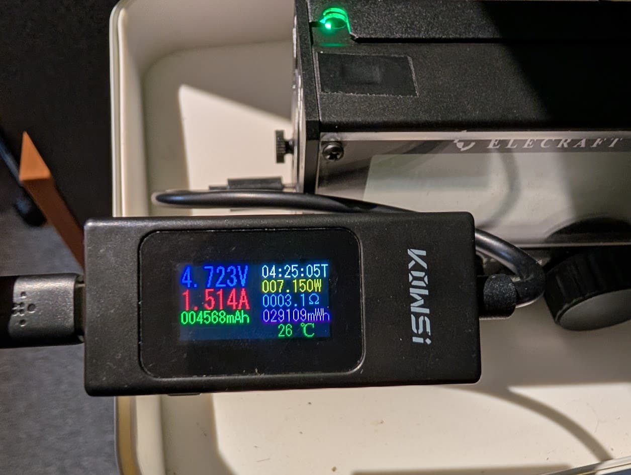 Finally in OTG where the KX2 is charging an old Anker 5V only Power Bank. LED on KX2 is now Red and the direction arrow on USB-C meter switched!