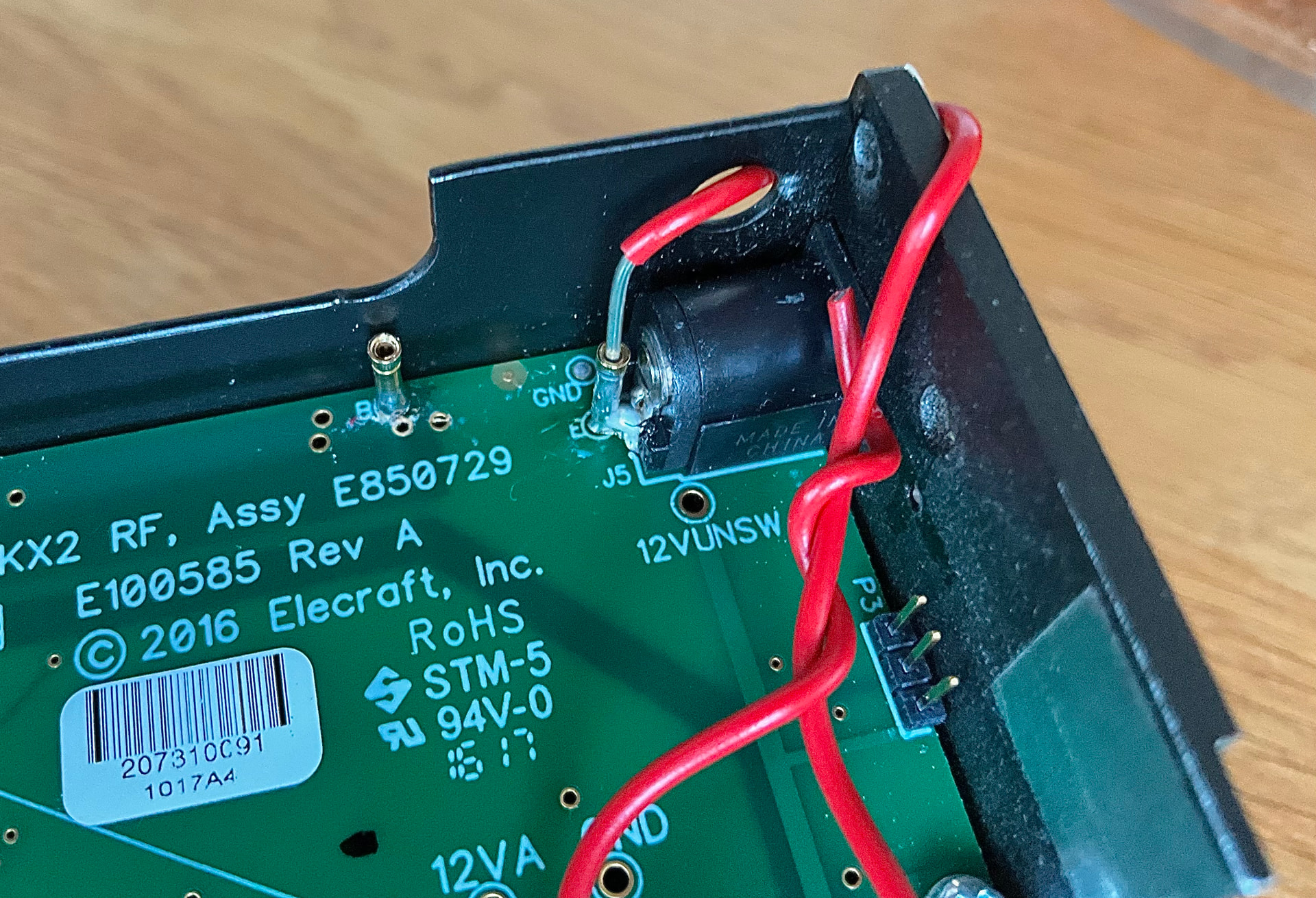 No need to be too nervous about it – it’s not that difficult, and you’re very unlikely to really break your KX2 in the process. Even if you completely wrecked the B and E pads, the KX2 would still work fine, and you have a second chance at installing the KXUSBC2 too (there are two B pads next to each other, and instead of using the E pad, you can also solder directly to the DC jack’s center pin).