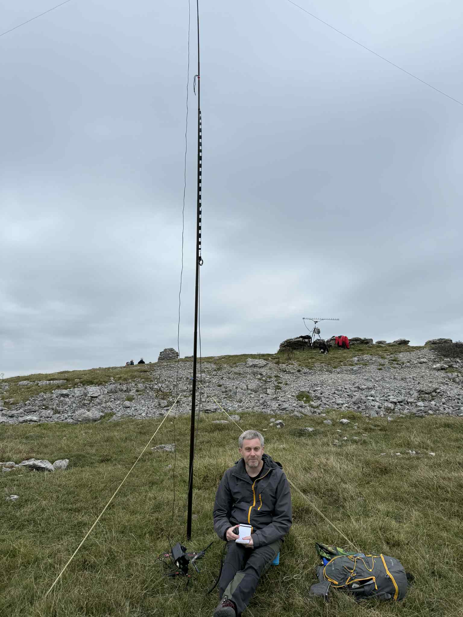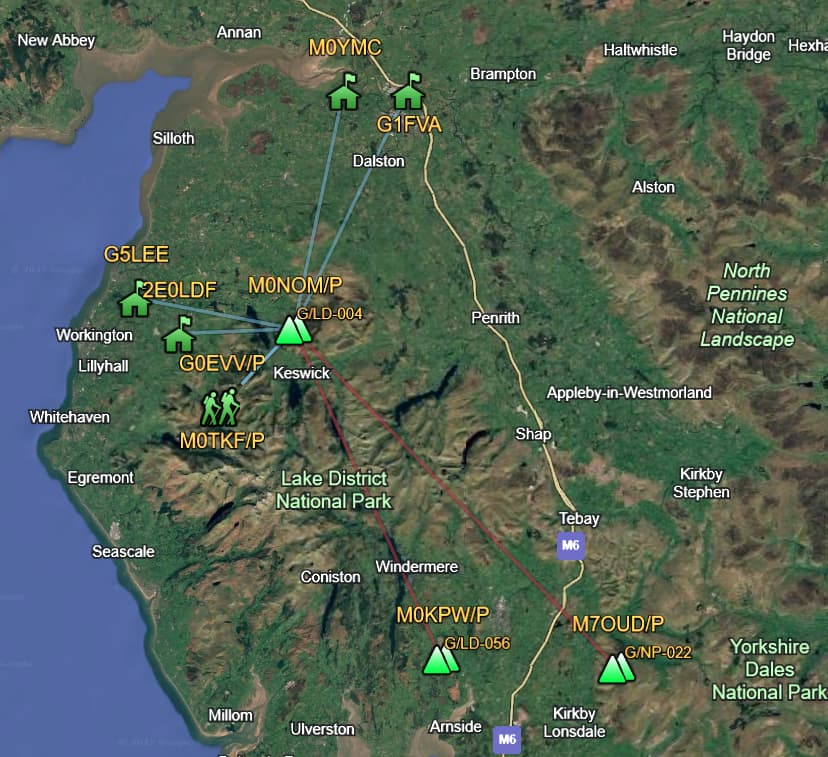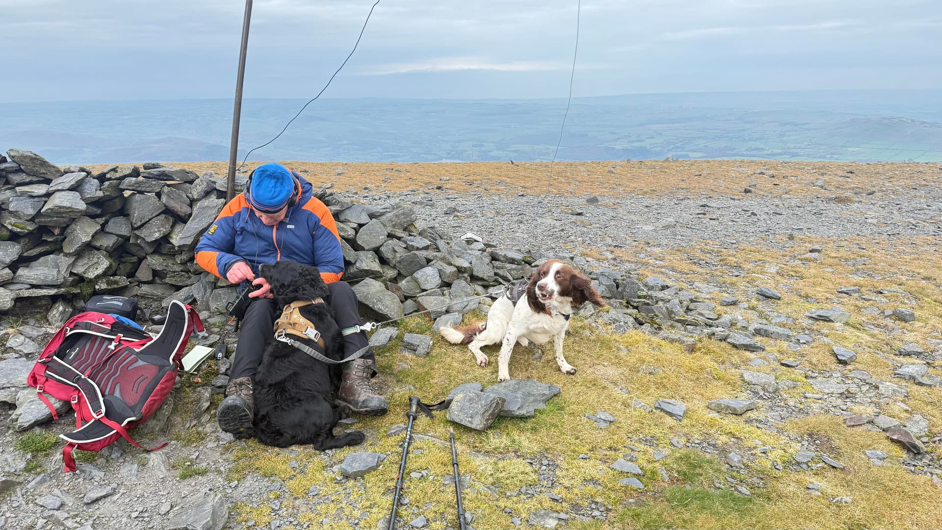 Paul braved HF and was quite the sight setting up an HF dipole with his two attached dogs, very impressive! I was content with my eight handheld 2m contacts including S2S with Tony on G/LD-022 Calf Top and Chris @M0KPW on G/LD-056 Whitbarrow Scar (Chris had a very impressive signal that we could still here quite low down on the descent).