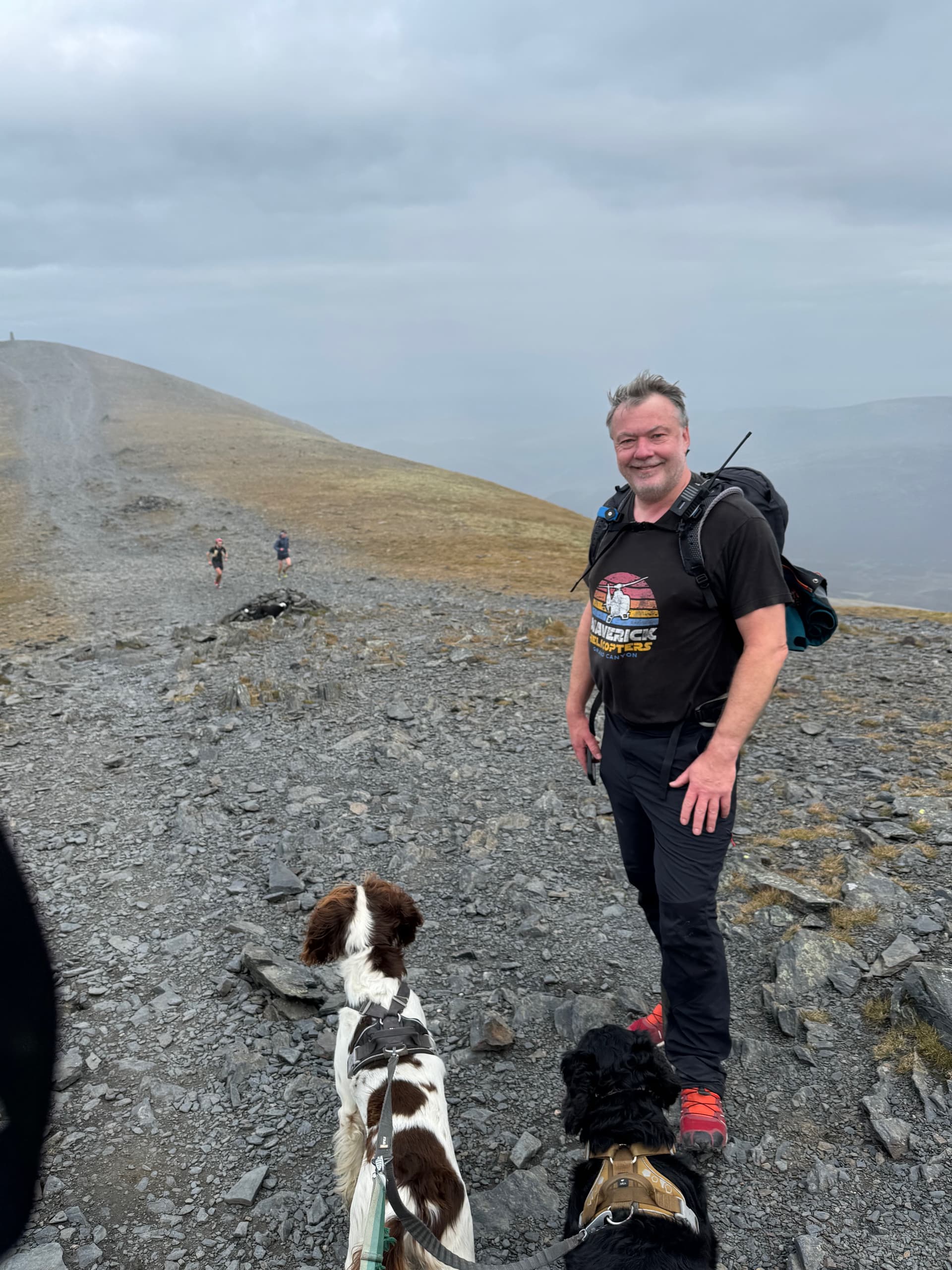 Me and that bloke off the motorbike (M0NOM) on Skiddaw, and that daft black dog (Jet)