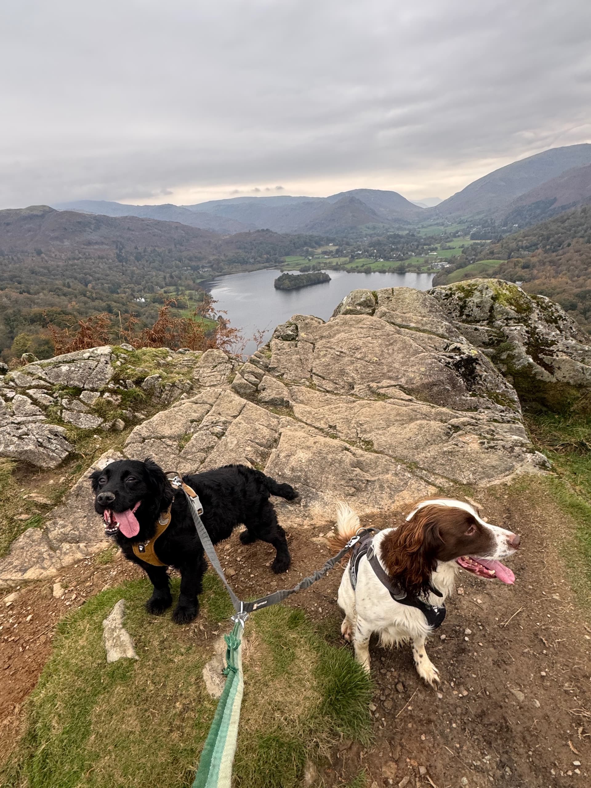 He said something about Loughrigg Fell. I enjoyed pulling him up the hill again, but this time there was no-one to show off to so I was a bit better, but that black dog still managed to get his feet around the wires. I enjoyed saying hello after he said CQ then we went back down, and it still hadn’t rained so I didn’t manage to get too muddy….