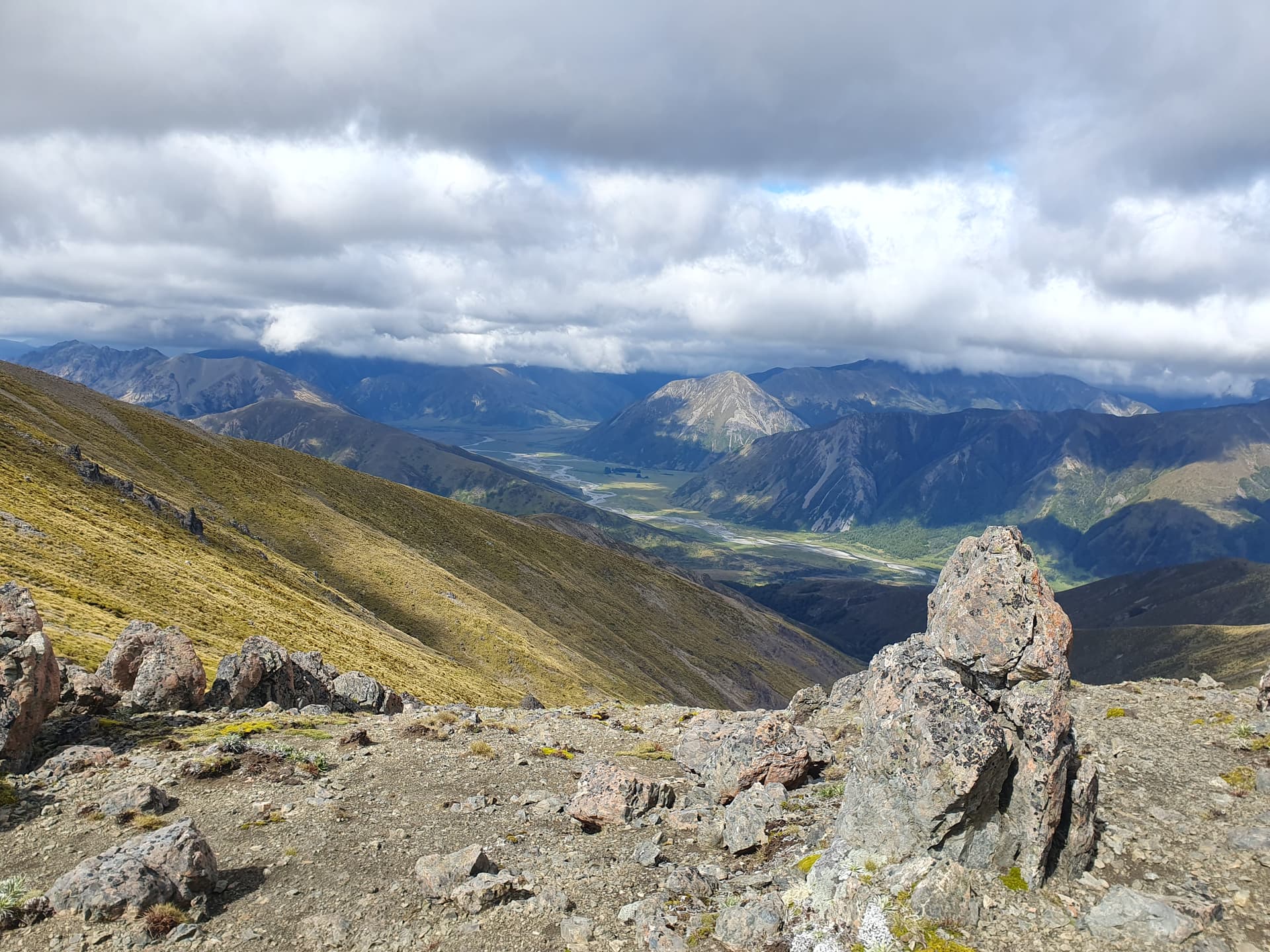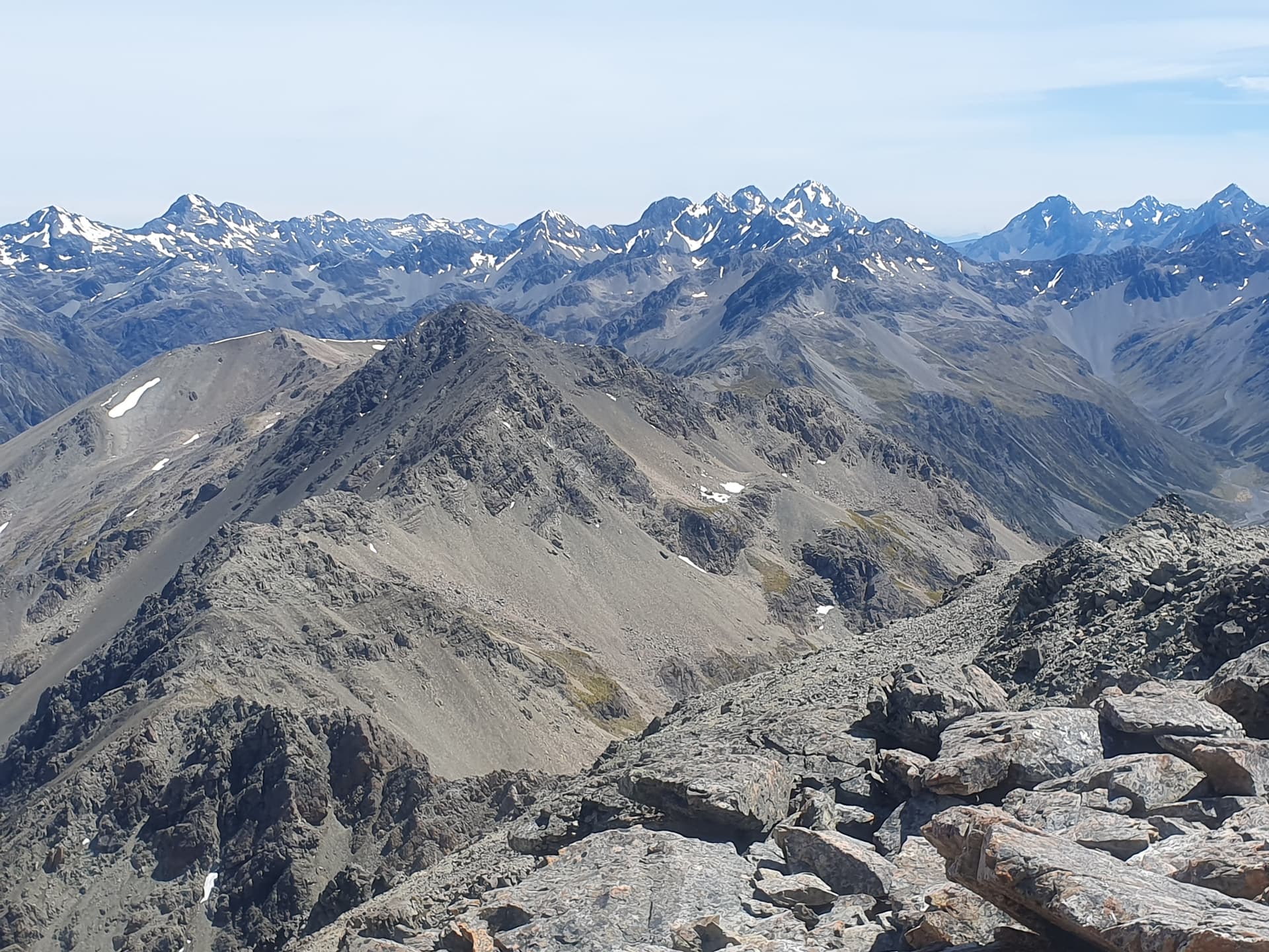 Mt Clara [ZL3/CB-257] - the final summit on this loop of the Crimea / St James ranges - offers more rocks to hide behind and more relaxed activation