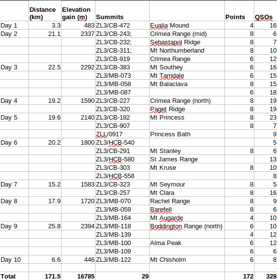 I have spent the last few months dreaming of exciting and adventurous SOTA trips for my 3 week break over xmas, drooling over maps and squinting at tight-packed contours. Traversing Potts Range, Wild Mans Brother Range and nipping outlier summits off the flanks of the