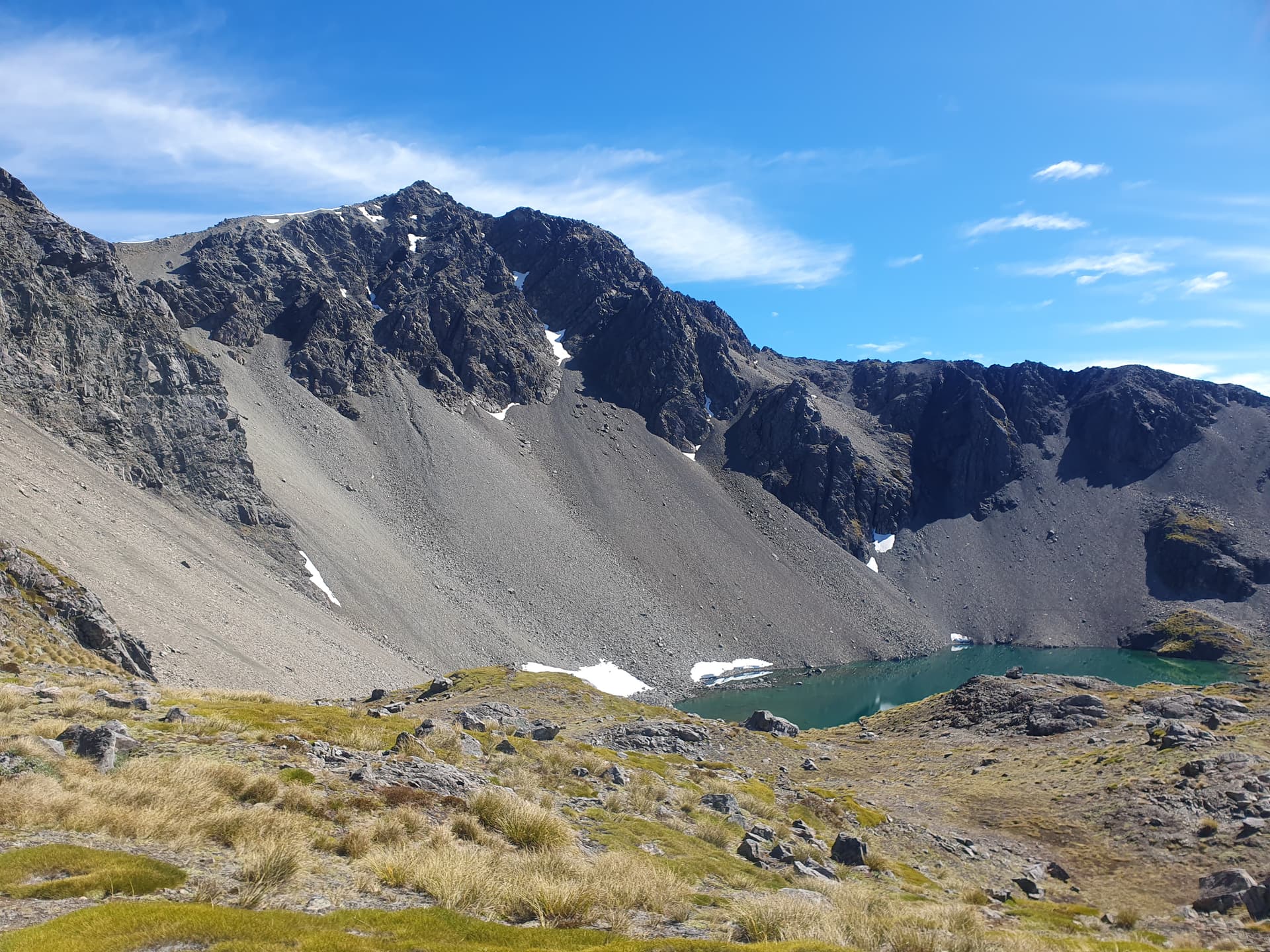 The wonderfully named corrie tarn, Princess Bath [ZLL/0917], lies in the basin below Princess Peak - the peak itself accessed via steep chutes of very loose scree behind the lake