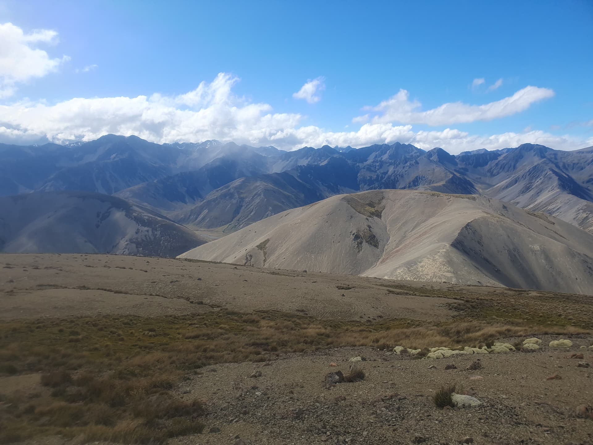 Back on-topic it’s time to loop back down the St James Range towards our start point at Fowlers Hut. The original schedule has been thrown out of the door by equipment failures and side trips - so the planned second leg of the Molesworth trip is cut in favour of a more thorough exploration of this western St James Range. An easy spur-climb from the St James Cycle trail south of Lake Tennyson leads to a straight-forward roller-coaster scree-and-tussock ridgeline crossing 3 HEMA and 2 SOTA summits including Mt Stanley and Mt Kruse.