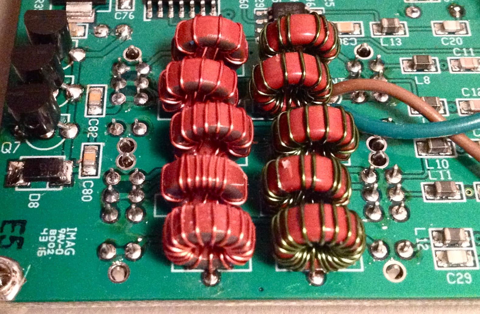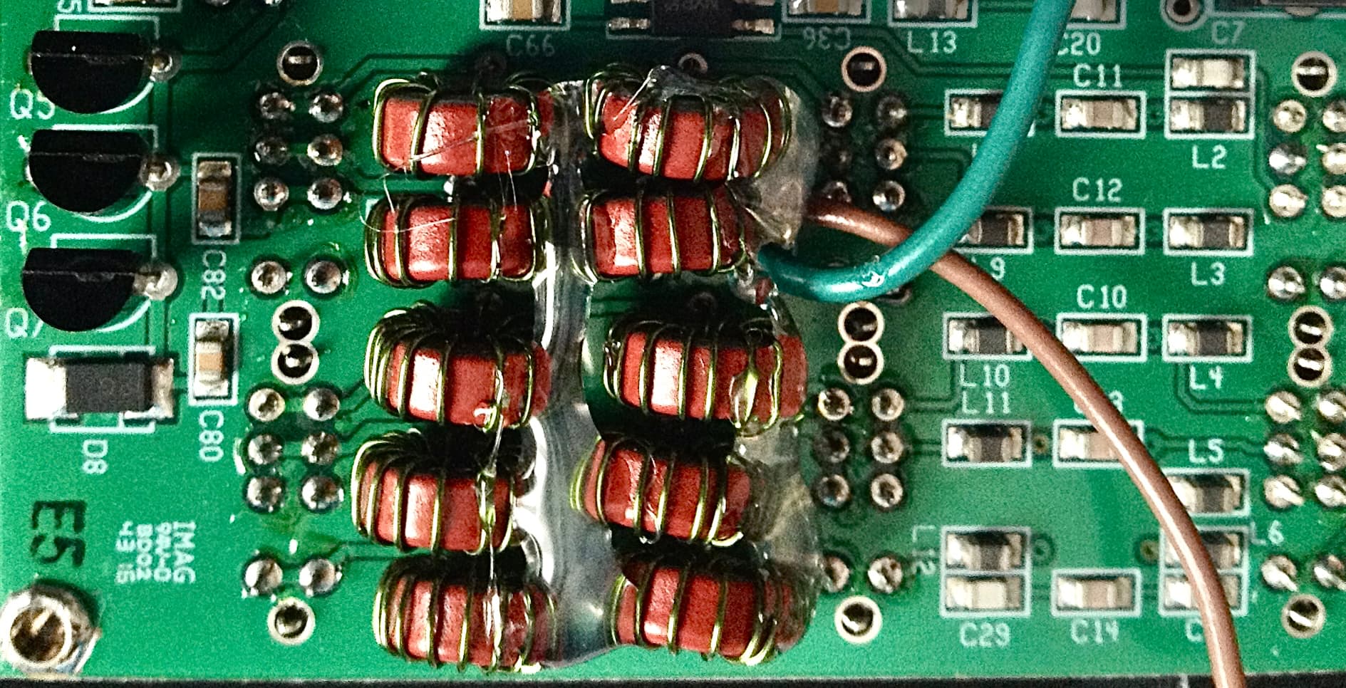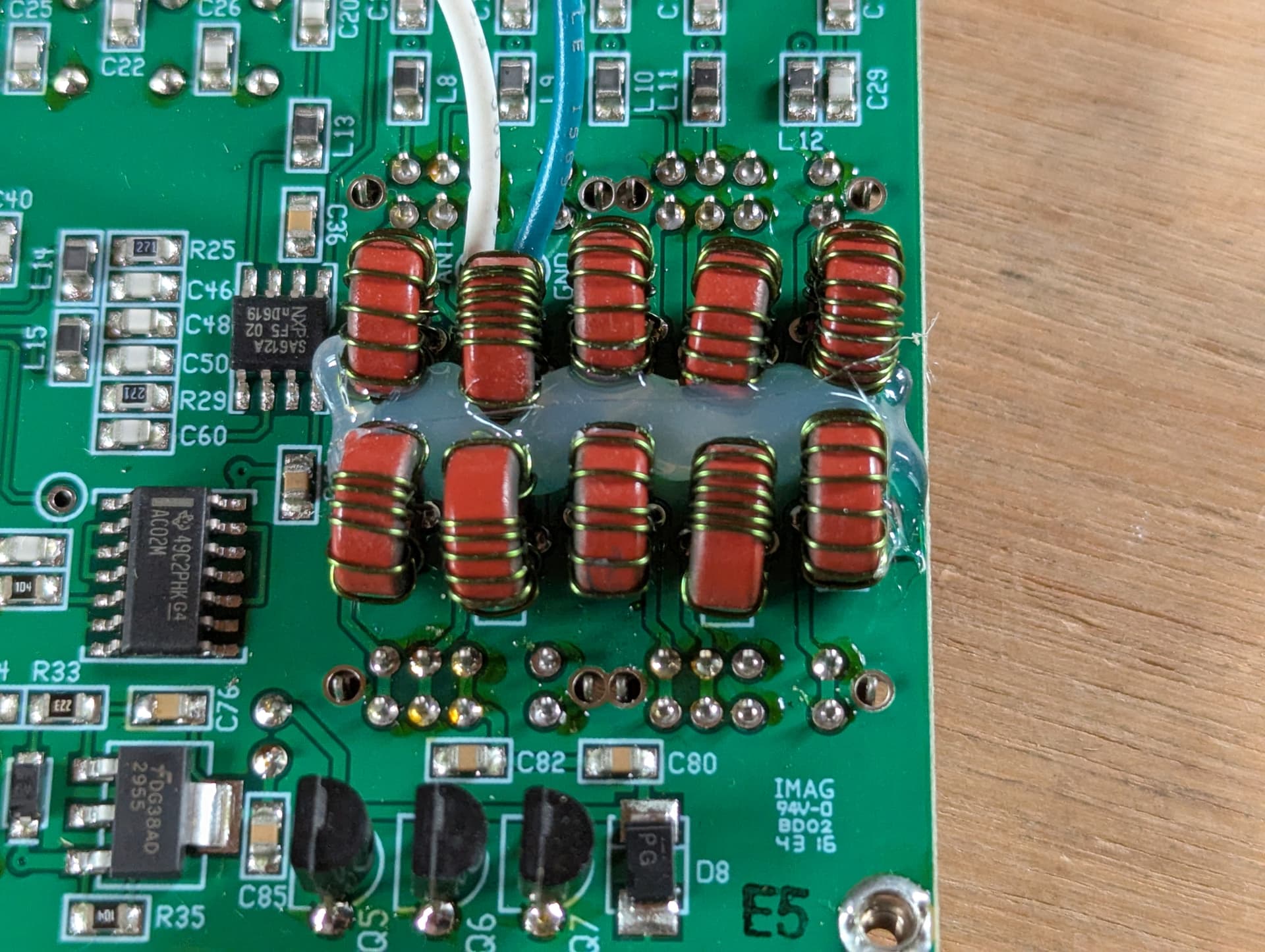 After carefully removing the adhesive, I desoldered the input-side LPF inductors, rewound them, and then spread the windings to achieve maximum output power.
