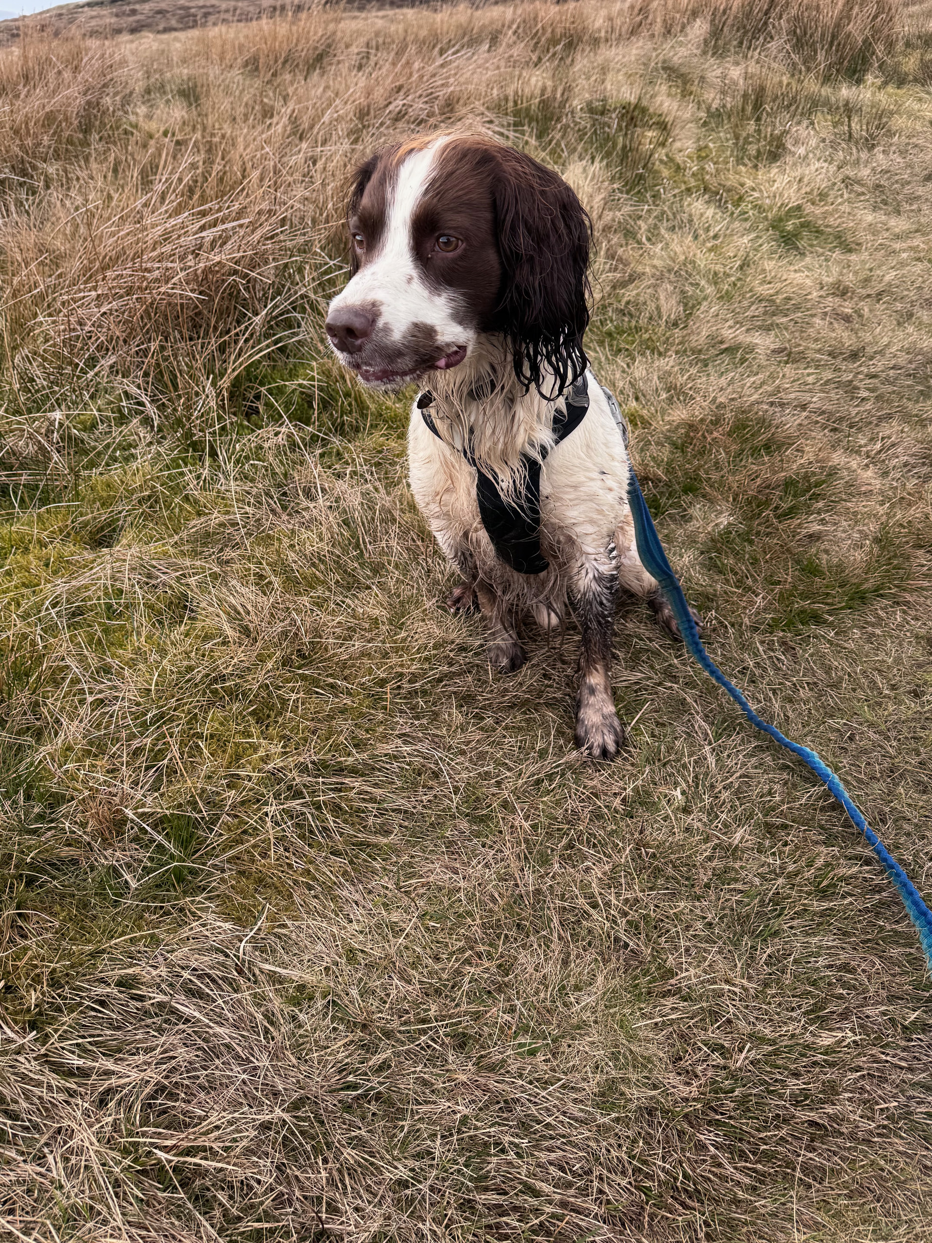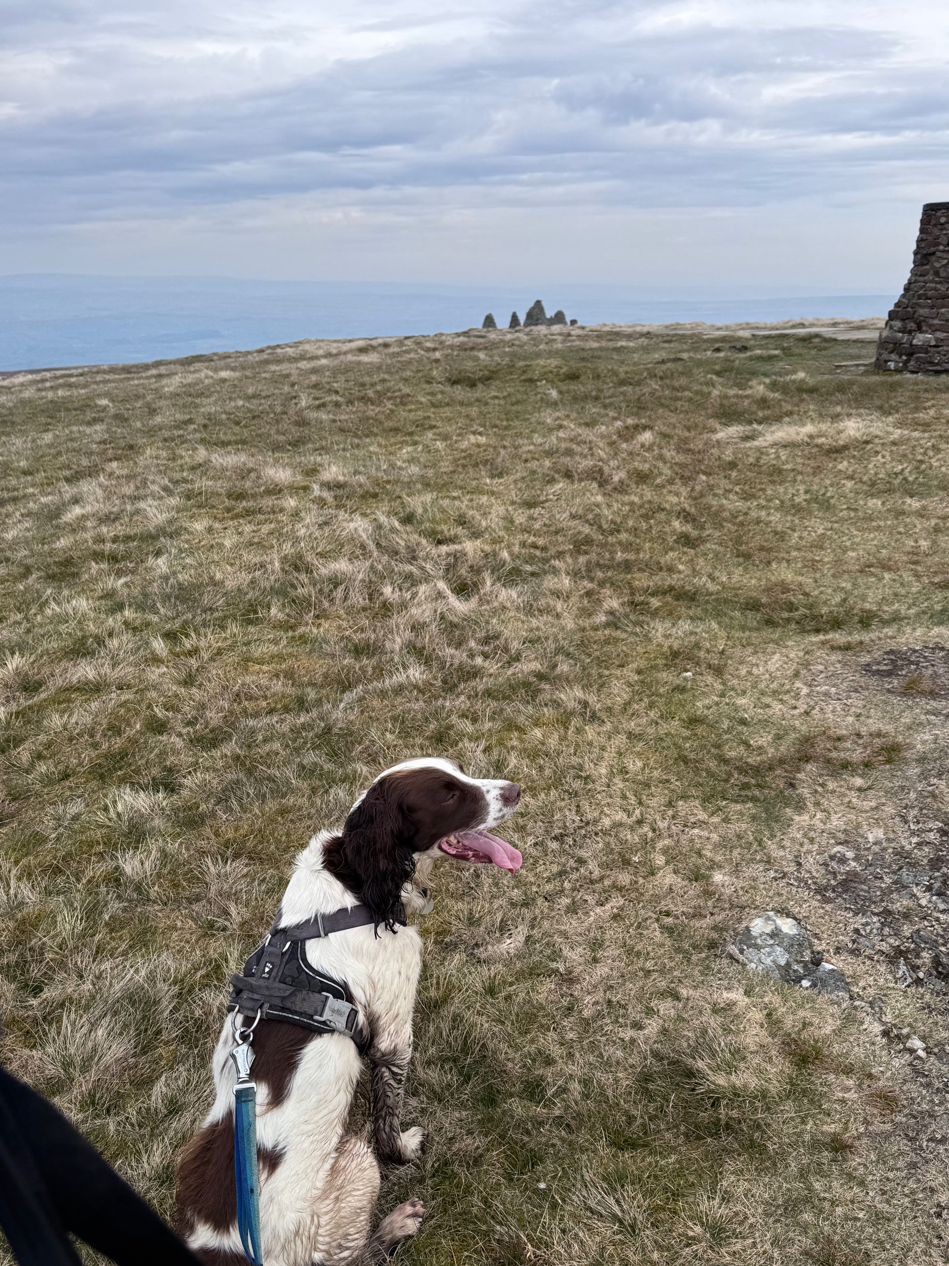 ….Well another walk today, but my brother - the black one feigned a limp so I had to accompany the man up the hill. He had his large backpack today and he took an age at the summit. He took everything out the bag and then began to assemble something like a rubics cube which he attached to the pole thing. I tried barking at it but it didn’t seem to help much. The people my man was talking to complimented me on my barking, apparently the barking modulation was much better than the mans voice. (*) Then this woman came over with a dog she had carried up the hill (imagine the indignity of that) worried that I was cold or hurt. Well of course I wasn’t I was attention seeking and I could see a couple of grouse in the distance…. I was of course silent for the entire time apart from when he plays radio…
