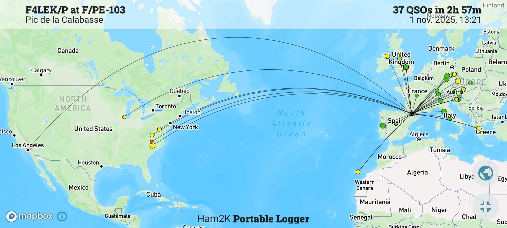 I got S57S in the log, then a number of US chasers before F4LEK returned my call Summit-to-Summit. He had a great signal to Southern California.
