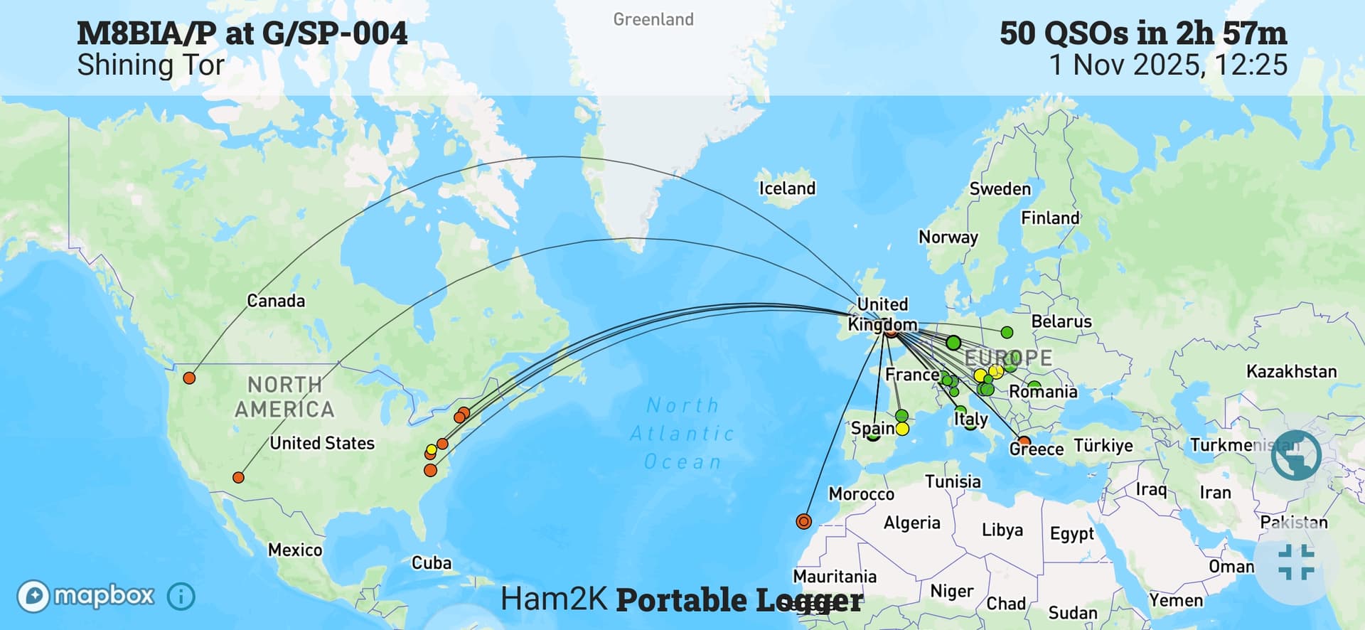 I operated for a total of about 75 minutes and managed 4 (maybe 5? if GW0PLP was S2S) EU S2S contacts and a rad SWL report from a gentleman in the Netherlands. I had 9 total EU QSOs and Morocco. I wish I could have spent more time operating, and I suspect that if I could have accessed spots, I may have been able to work more than you.