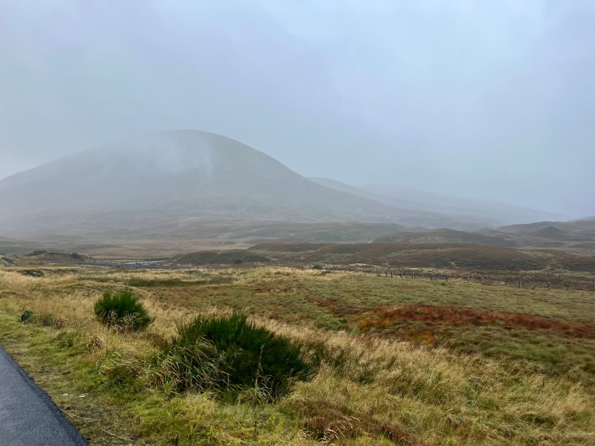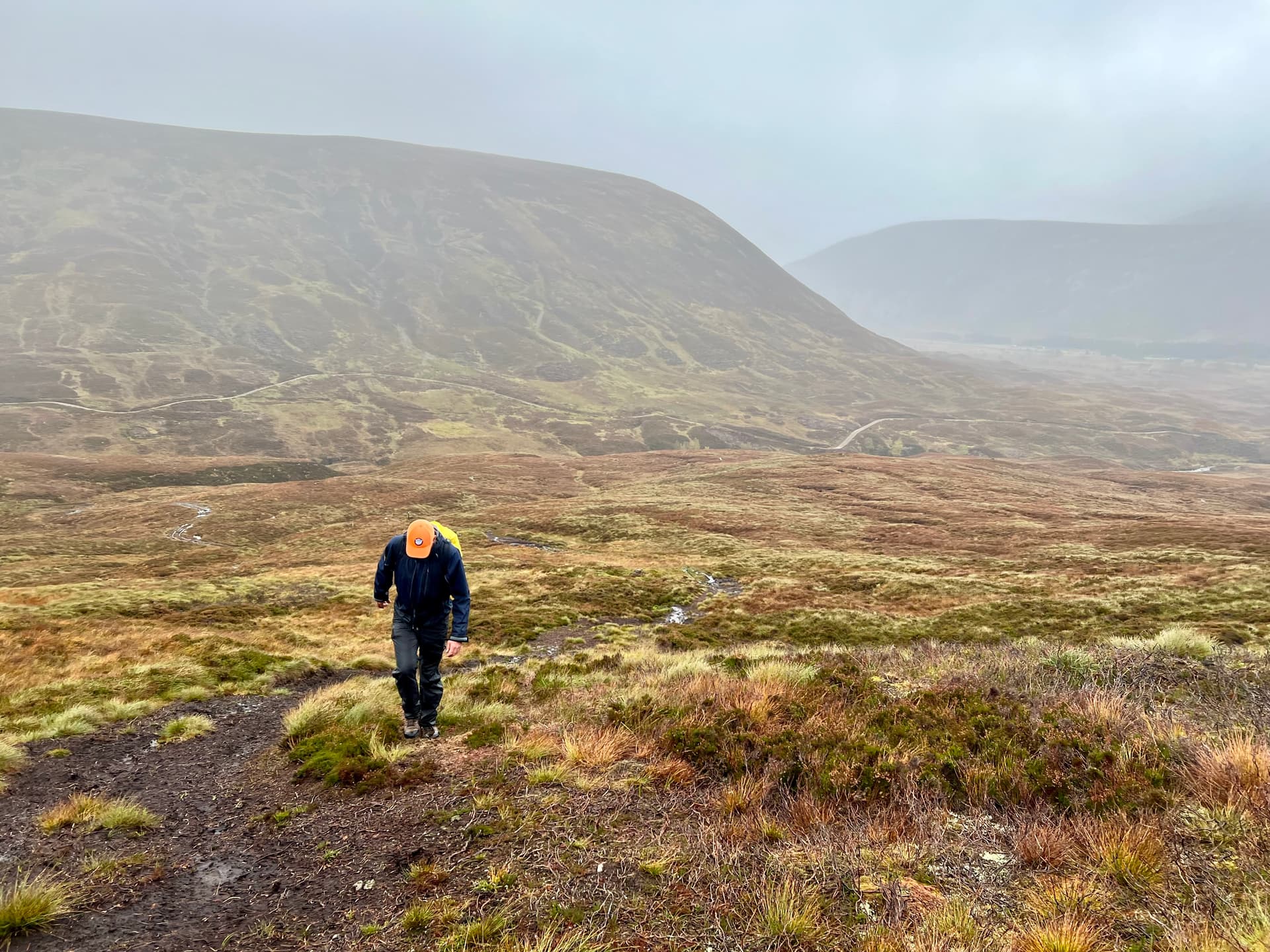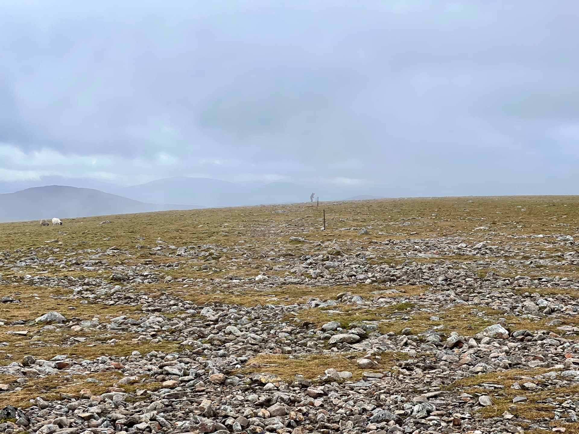 As Fraser is getting close to completing all the Cairngorms National Park summits, he suggested we went there instead. He only had five left, which included The Sow of Atholl, GM/CS-078, and Geal-Charn, GM/CS-043. A route between the two, including the other two SOTA summits of Beinn Udlamain, GM/CS-022, and Sgairneach Mhor, GM/CS-028, plus a quick detour to visit the unprominent A’ Mharconaich munro, soon began to form the day before. We considered a two car route for these but instead decided a shared car ride, and a 4 km walk along the A9, would be best. As the forecast was low cloud, and rain showers in the morning, we decided to walk the A9 section first, and start with The Sow. Plus we get the road part out of the way first.