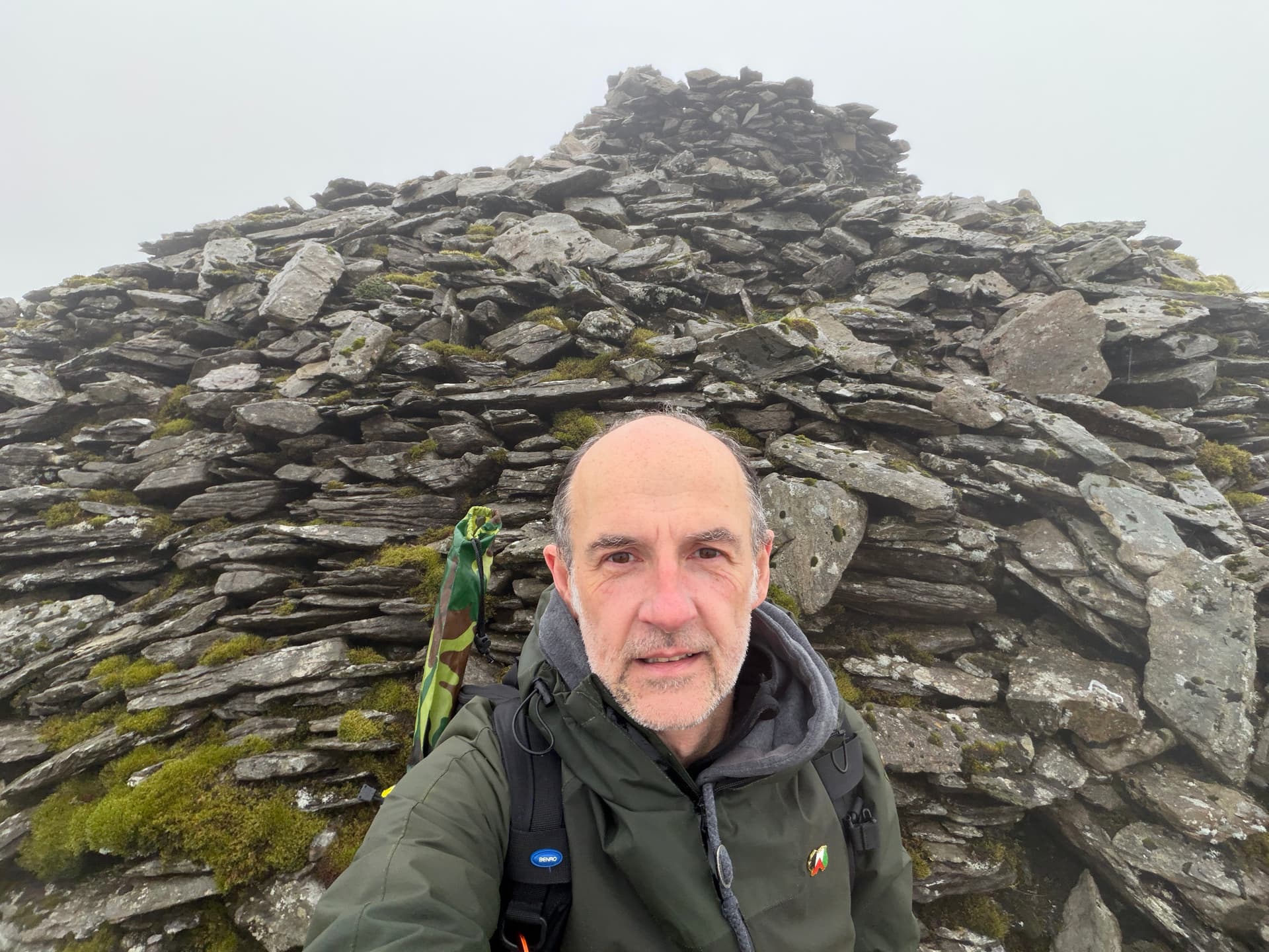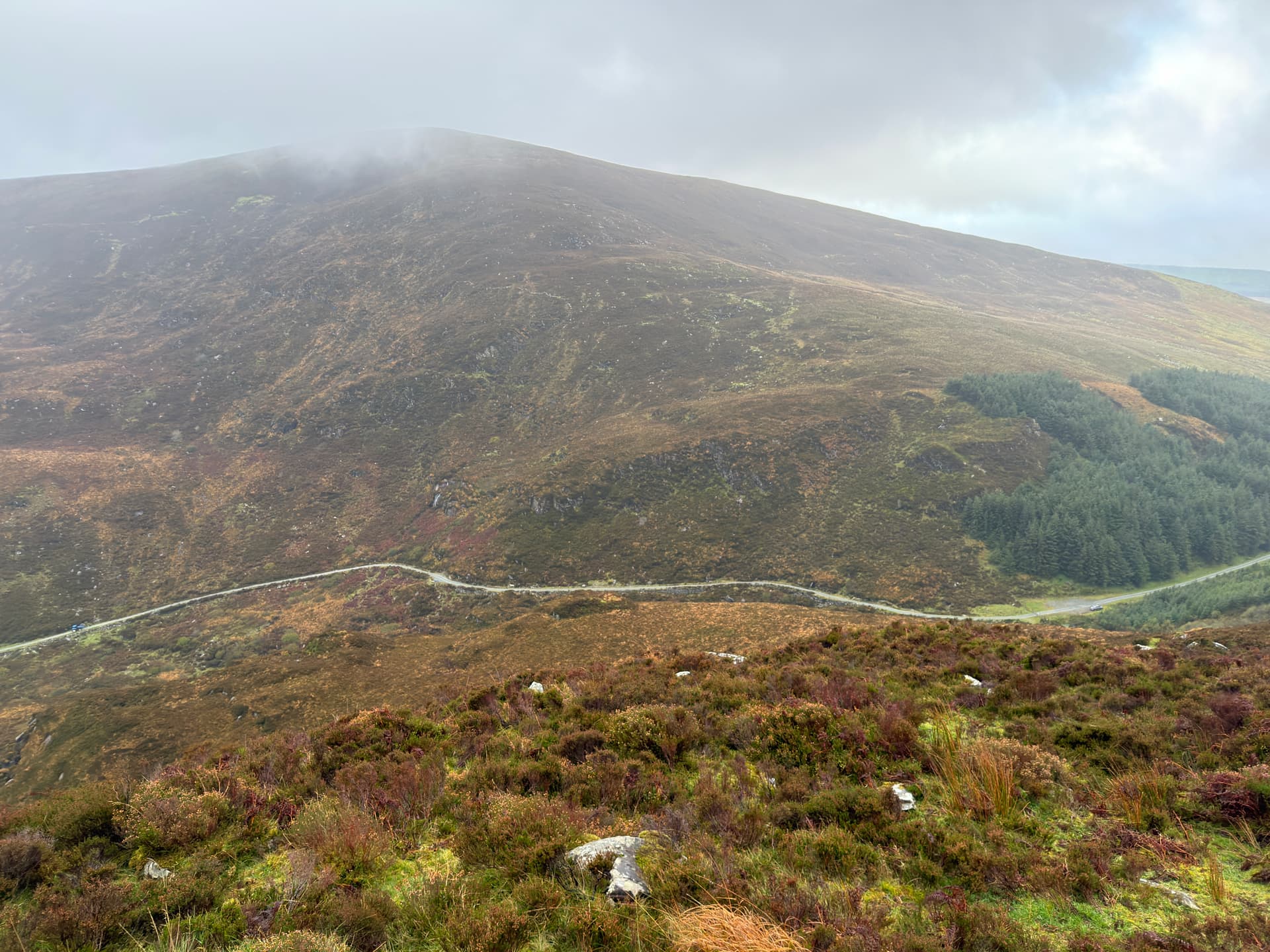 I made it to the top in wind, drizzle and cold. My plan was to record myself talking about the pre-Christian and even pre-Celtic, mystical significance of Dá Chích Anann, and their connection to the Beltane rituals and to the nearby “City” Cathair Crobh Dearg, take many drone shots of the Paps to add to the Wikipedia article I recently worked on, but none of these ideas materialized. I was soaking and miserable, so my only goal at that point was to activate the Paps East and find myself back in my car as soon as possible.