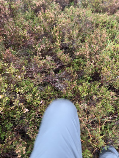 Coming back to the parking spot at 52.01241, -9.24864, there is a fence running west and up the hill. AllTrails suggest a trail on the right (north) of the fence, and you should probably follow it. I made a mistake of backing off from that trail because it seemed impossible to walk – it is just a steep ground covered with thick heather. I should have continued up that difficult initial part, but instead I came back to where I started and followed the rubble stone path on the left (south) side of the fence. Which led me nowhere and I had to cross another fence and ended up on that same indiscernible heathery trail I backed off from. Arrrgh. By the time I saw my first false summit, I was tired and wet.