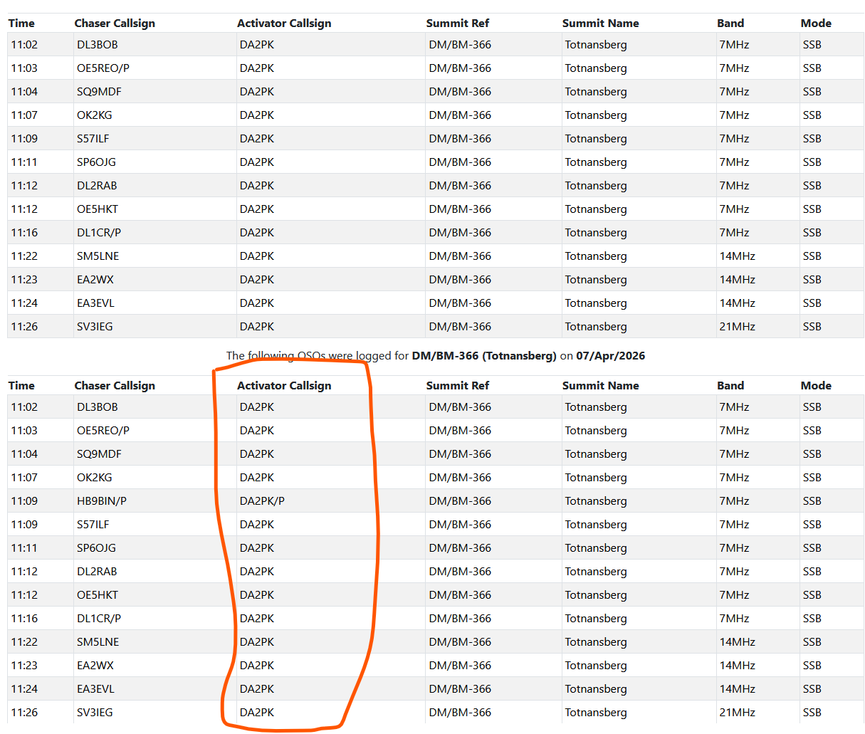 I often try to check if people got my callsign right. I’m new to CW, and the DA* prefix is also a rather new one here in Germany, so sometimes people log me as DL2PK. I also find it interesting to see how many contacts other activators made and which stations they worked.