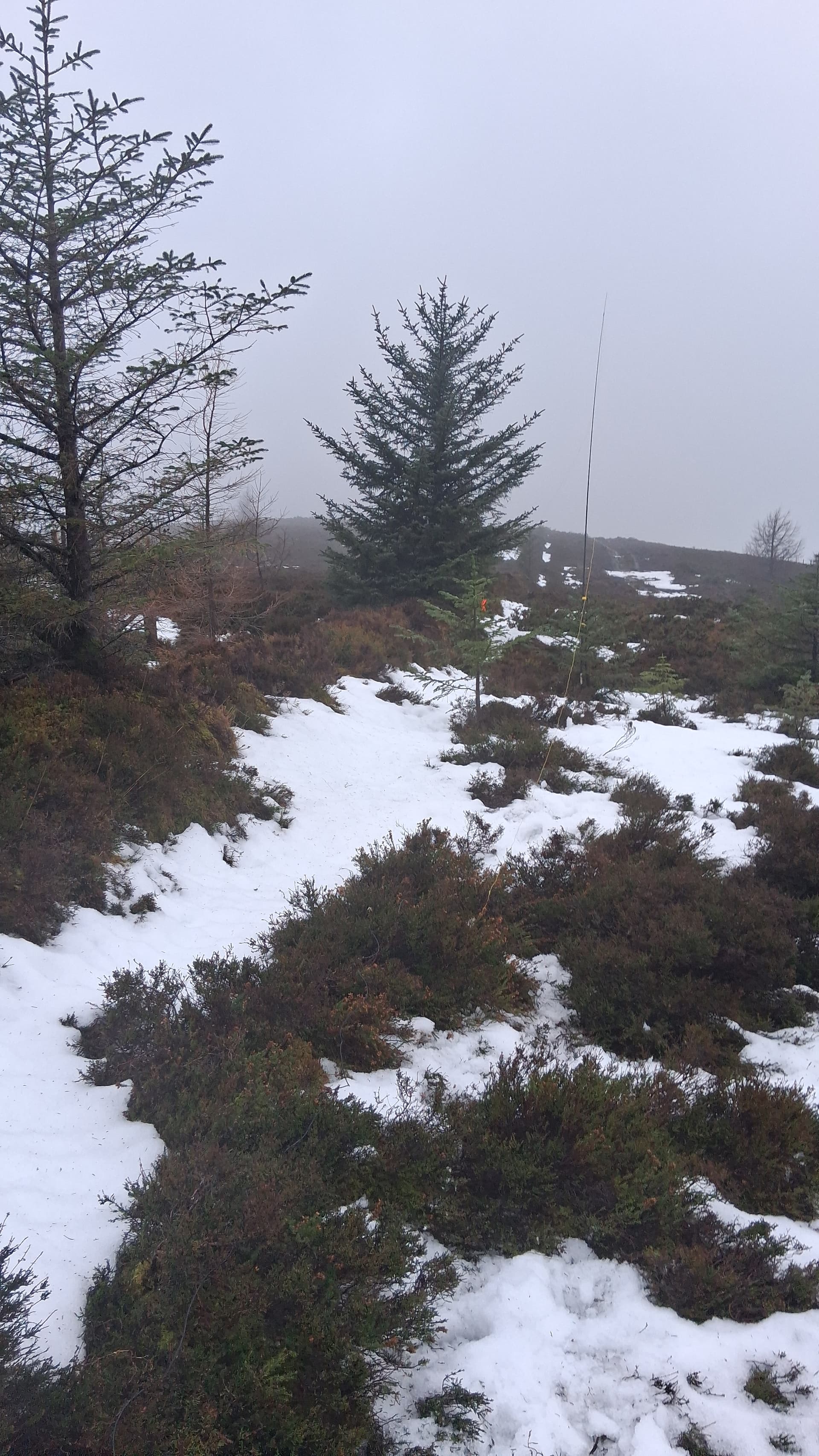None the less, a quick hike to the AZ. It was really wet and windy, so I remained on the edge of the trees, and selected a suitable sapling for my mast. S2S with Alex on 2m FM (no badge) and a bit of HF. Just five QSO’s on dead bands, but of course 5/9 both ways with the legend that is @F4WBN. Thanks Chris!