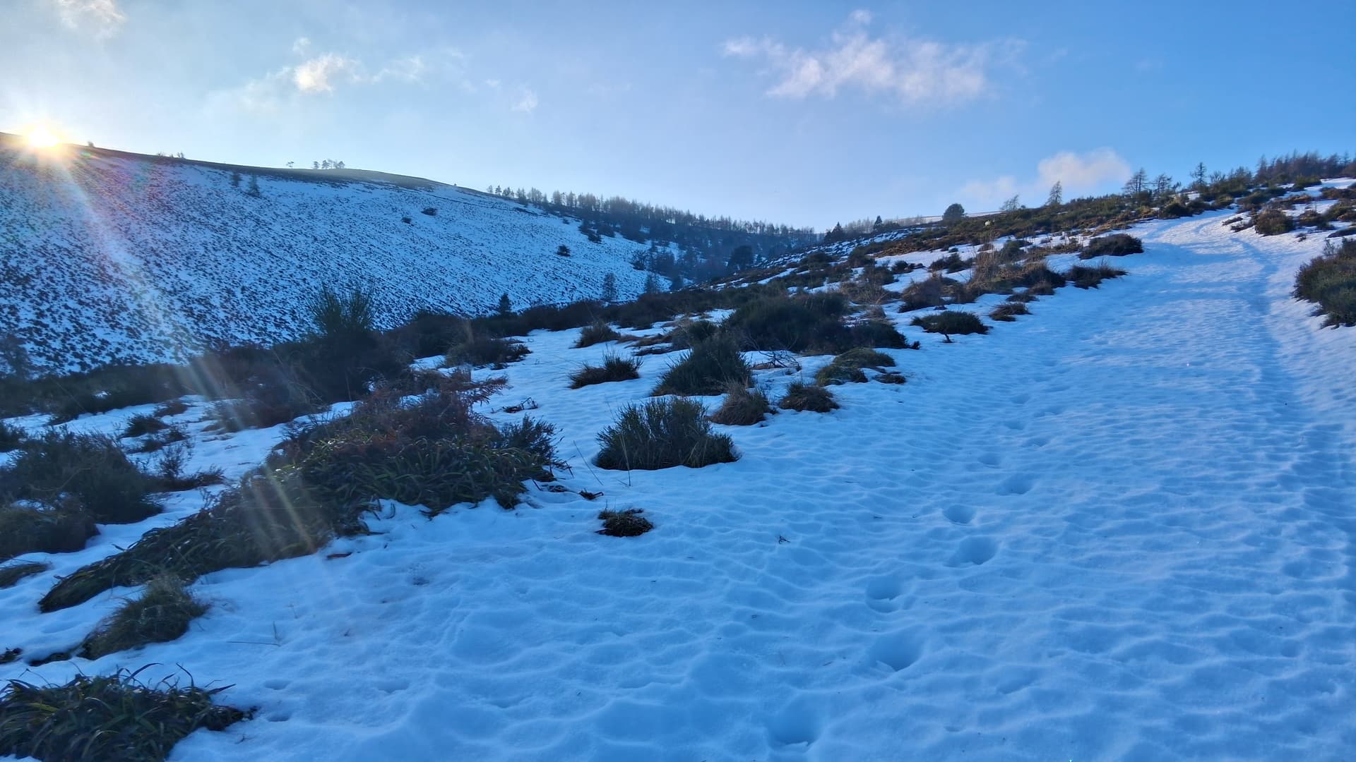 Lord Arthur’s is a winter favourite. Not too long or too steep, and all on a vehicle track. Except, this time the vehicle track was filled with old crusty snow.