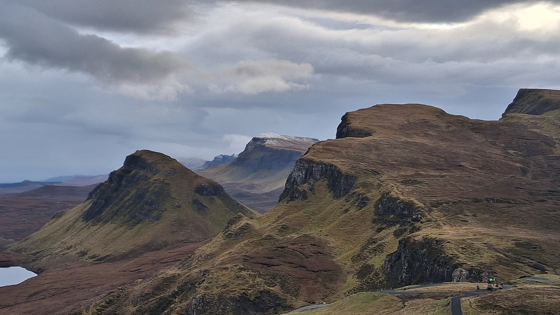 Breakfast at the superb new Isle of Skye Candle Co. cafe just south of Portree, then up the west coast to Uig and over the wee road to the bealach that sits between GM/SI-081 Bioda Buidhe and GM/SI-058 Meall na Suiramach. It’s more famous for being the location of the Quiraing.