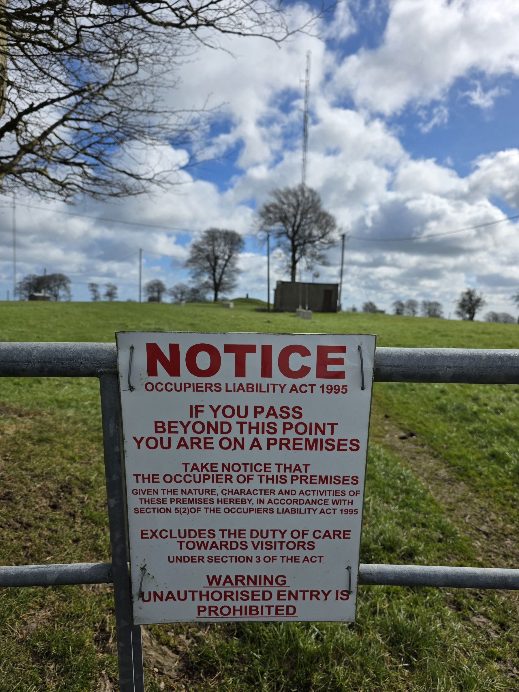 That’s just one of them. There’s about 937,803 masts, pylons, dishes and every other type of antenna you could imagine up here. Literally surrounding the summit. To cap it off, the gate to the summit greets you thus notice the trig in the background: