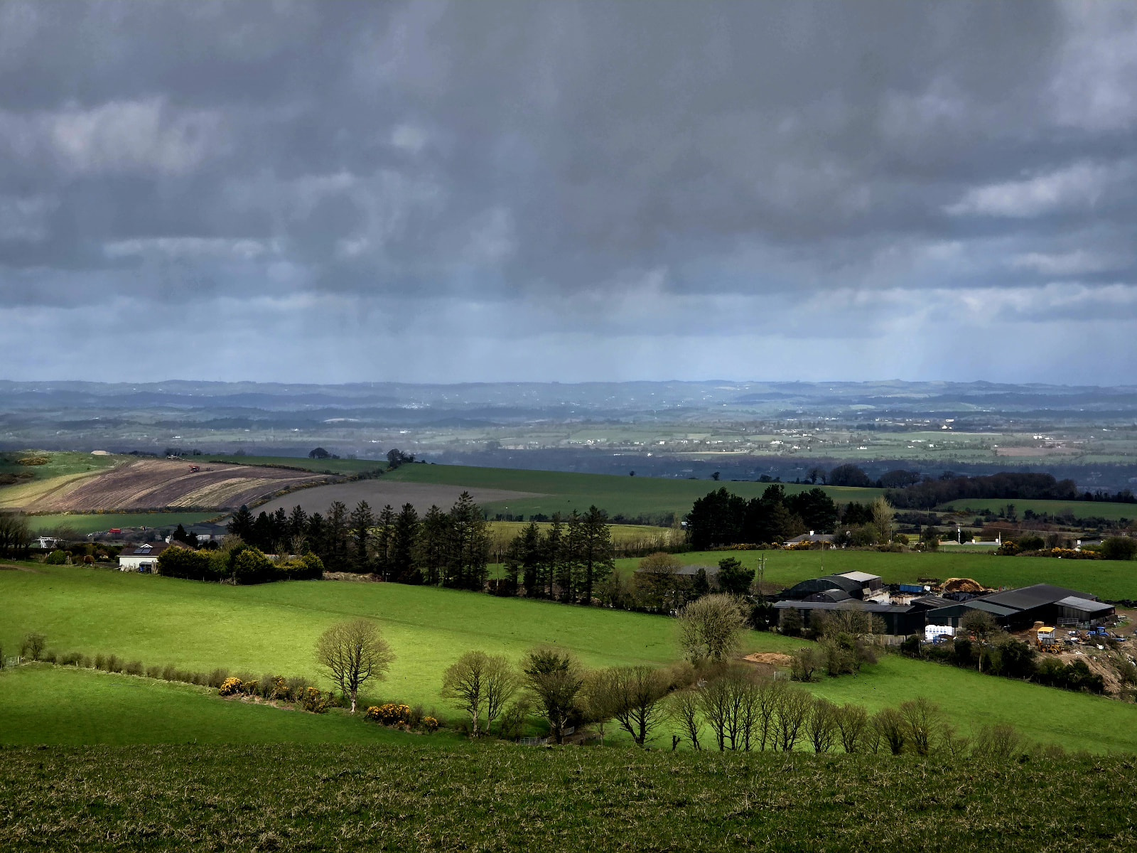 No sooner had I made it to the trig and given it a slap than I looked behind me and the next wave of angry clouds was on the way. Time to move. I called CQ again. Nothing, just noise. I tried to see could I pick up the IRTS news on 525 but nothing.