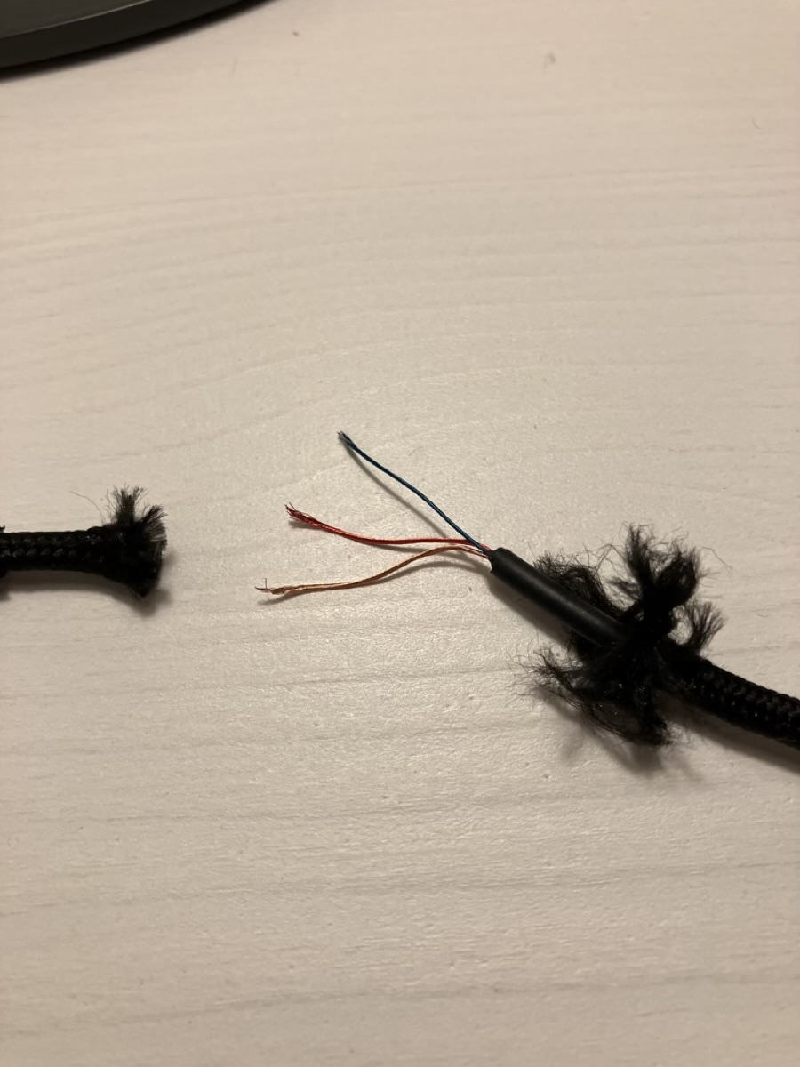 OK. It’s just I had a similar cable used on a PC headset that failed hence having a cable with 3.5mm plugs attached still. There were two enamelled unscreened cables and one not enamelled that when carefully unlapped had a tiny plastic core and that had a fine wire inside the plastic.