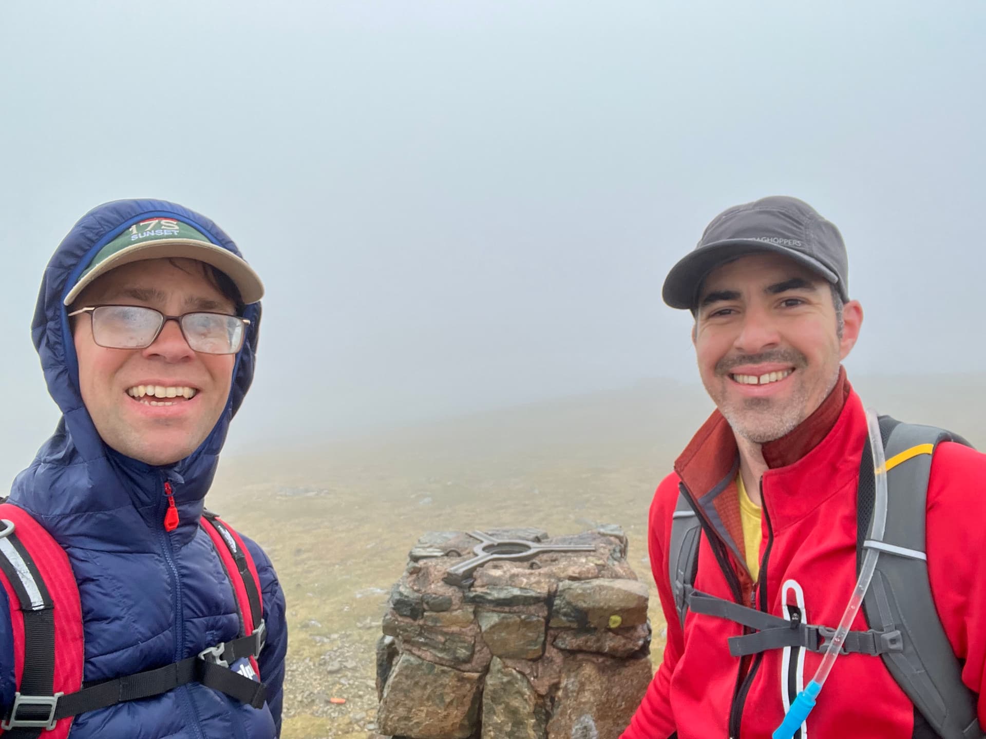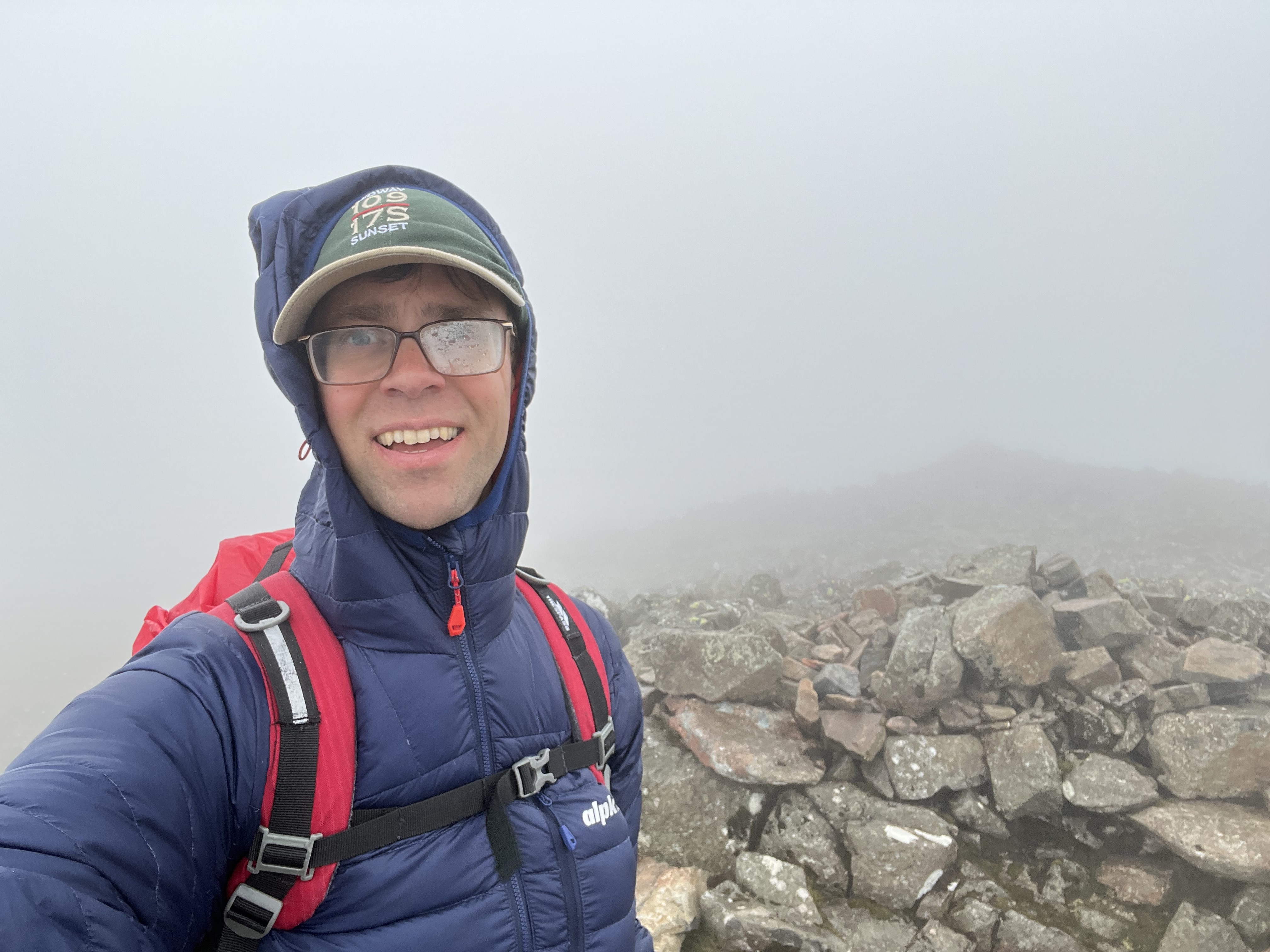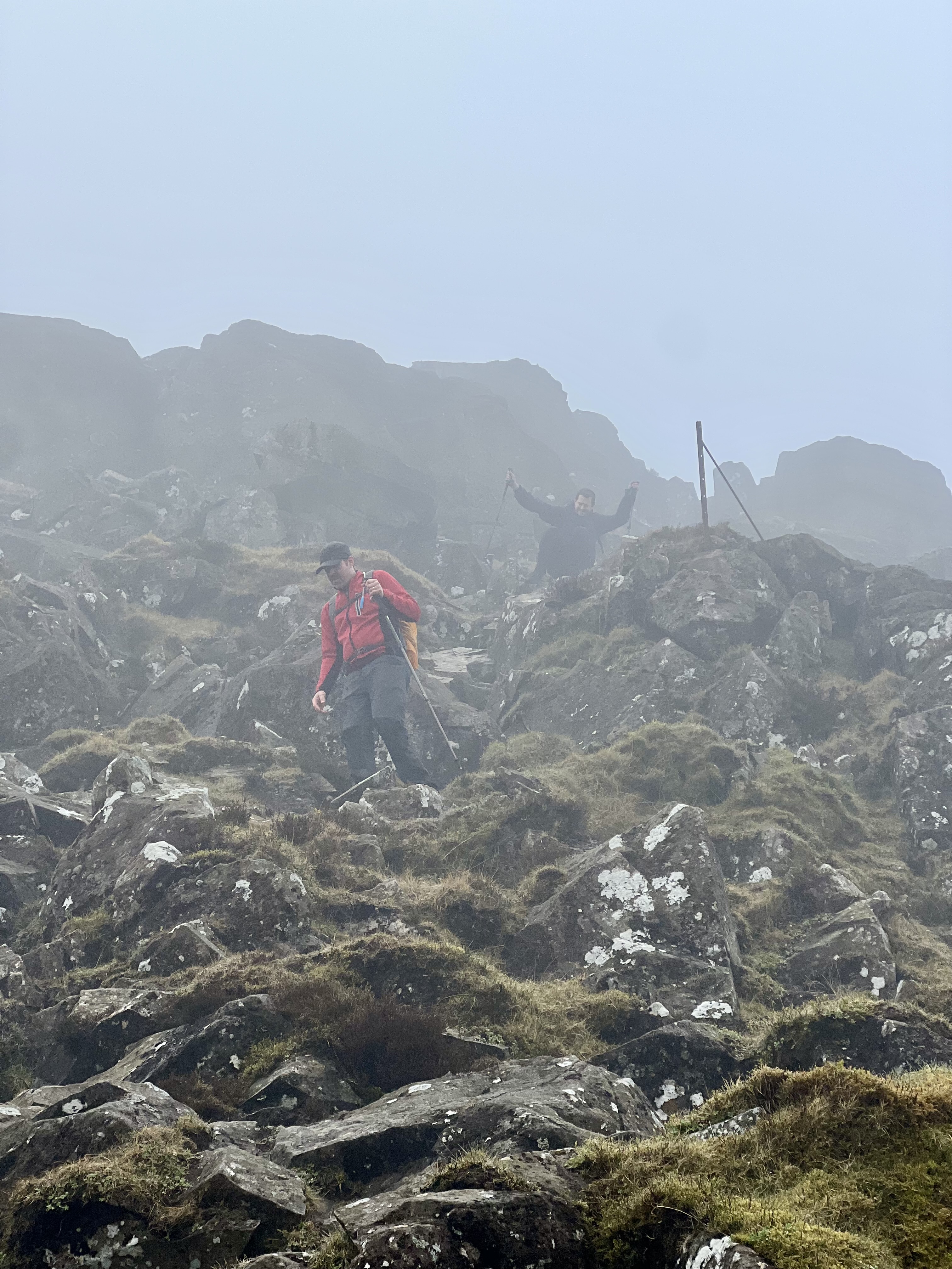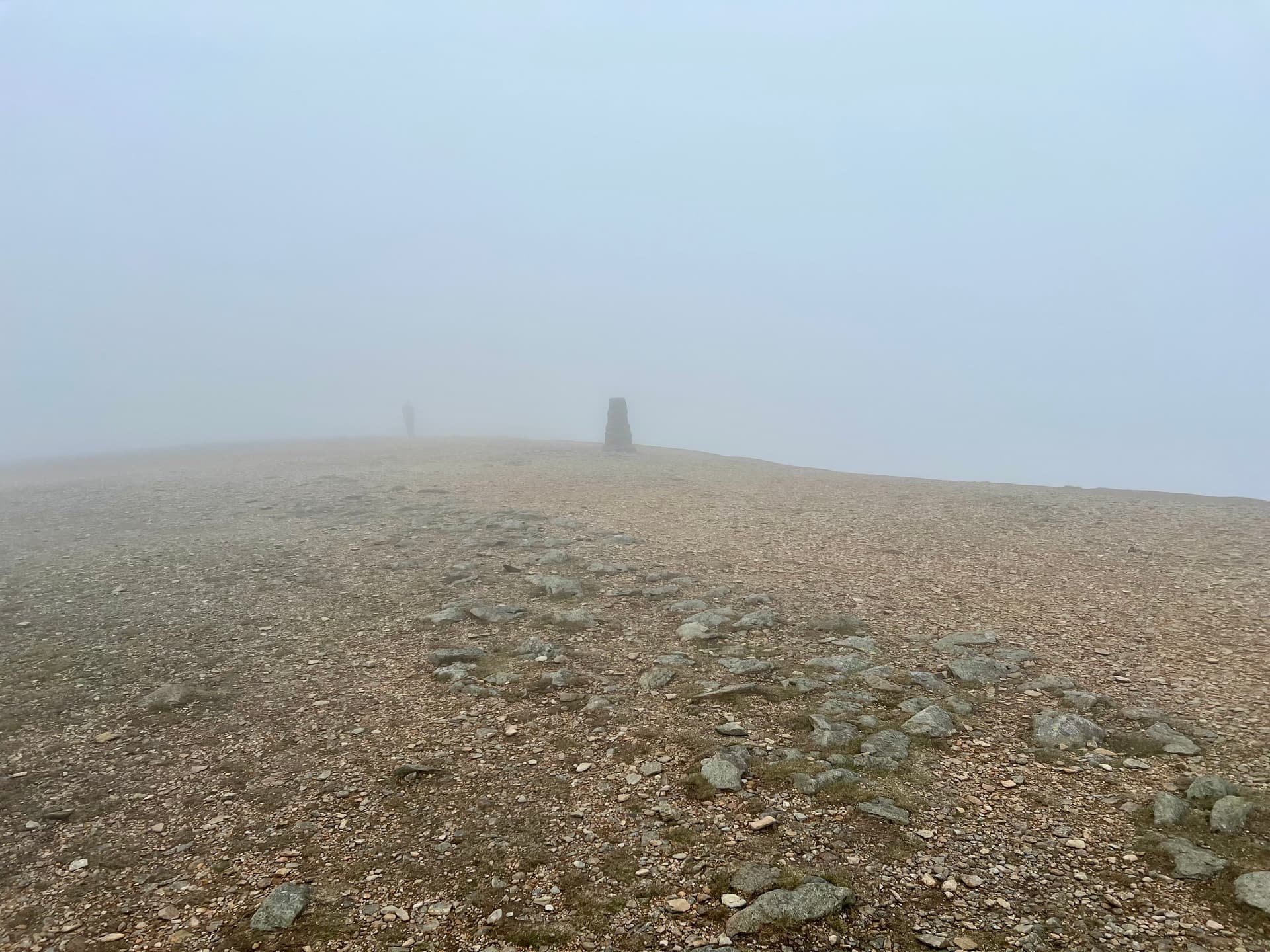 We were overtaken by a bunch of Geordie lads, in hoodies and joggers, egging each other on. Said hi to enthusiastic dads carrying sodden and miserable children back down, and shared nods and grimaces with many, many more walkers. The trudge to the top, across ambiguous paths marked in the stones, was a cause for celebration and disappointment. Celebration we had made it and disappointment we weren’t going back yet!