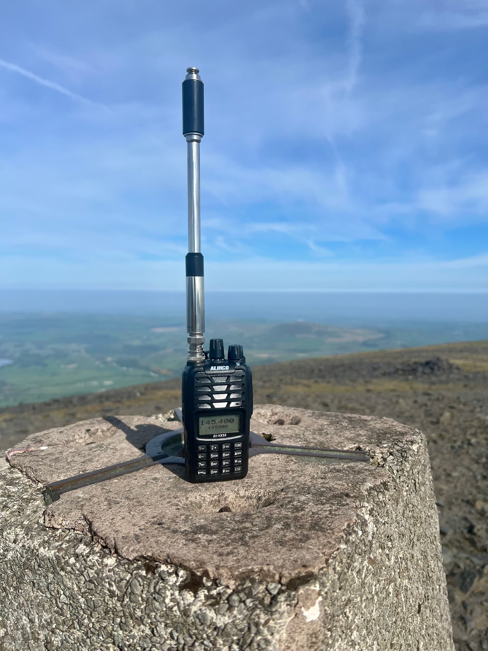 We reach the top and the views were stunning. A slight breeze keeps us cool and after some summit selfies, we head away from the top to a nice area of grass to setup. Today is ideal for some extended radio. I even crack out the SOTA flag. Mostly to look professional for the other hundred walkers sat by the cairn eating their lunch.