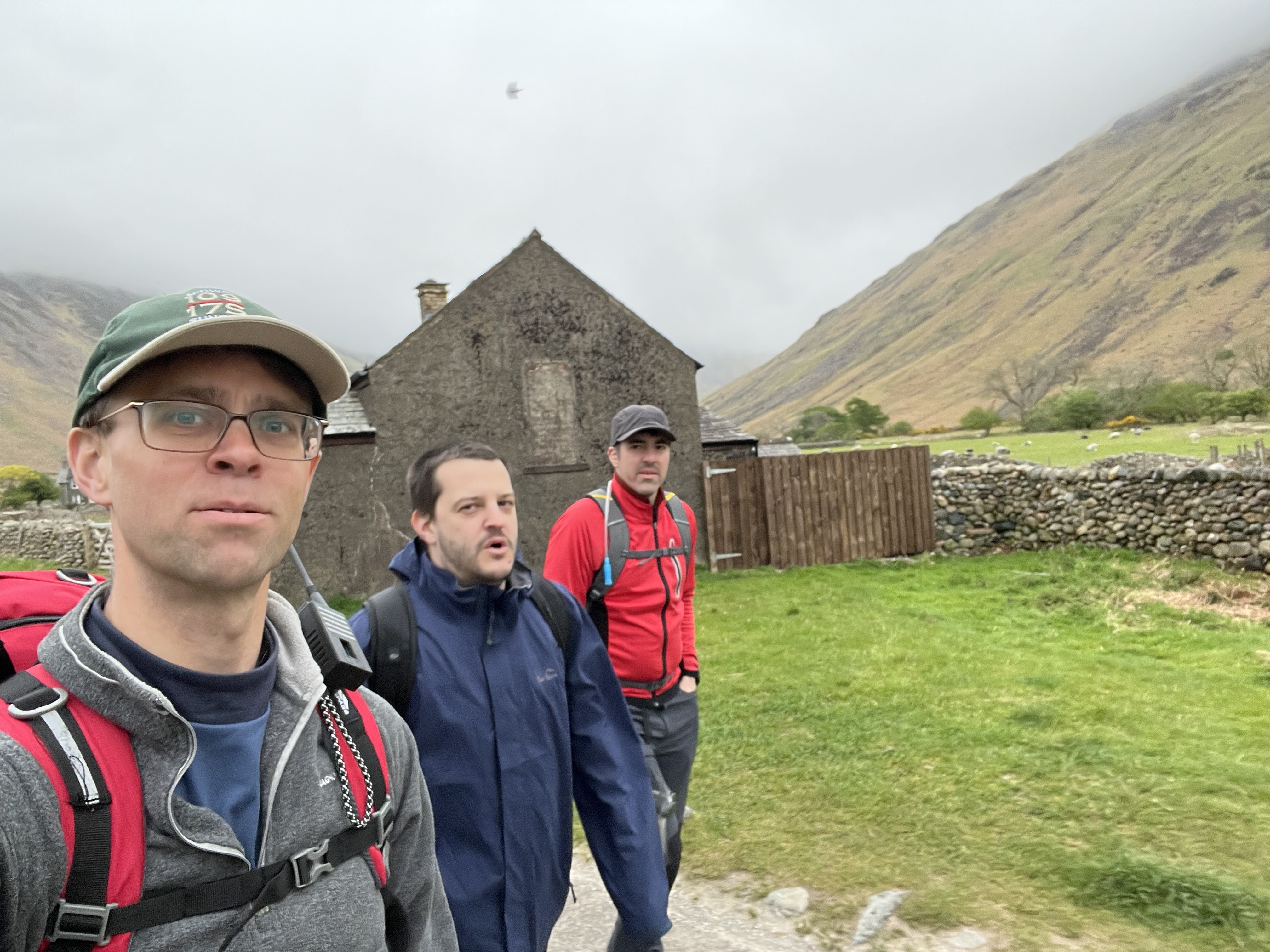 With ~21 km, and ~2,400 m ascent, I thought we could leave sharp and be back for dinner. I got up early and made everyone a cooked breakfast, and off we went on our 1.5 hr drive to Wasdale. The roads in the Lakes are particularly winding, and some passenger’s sausages were looking to make a second appearance