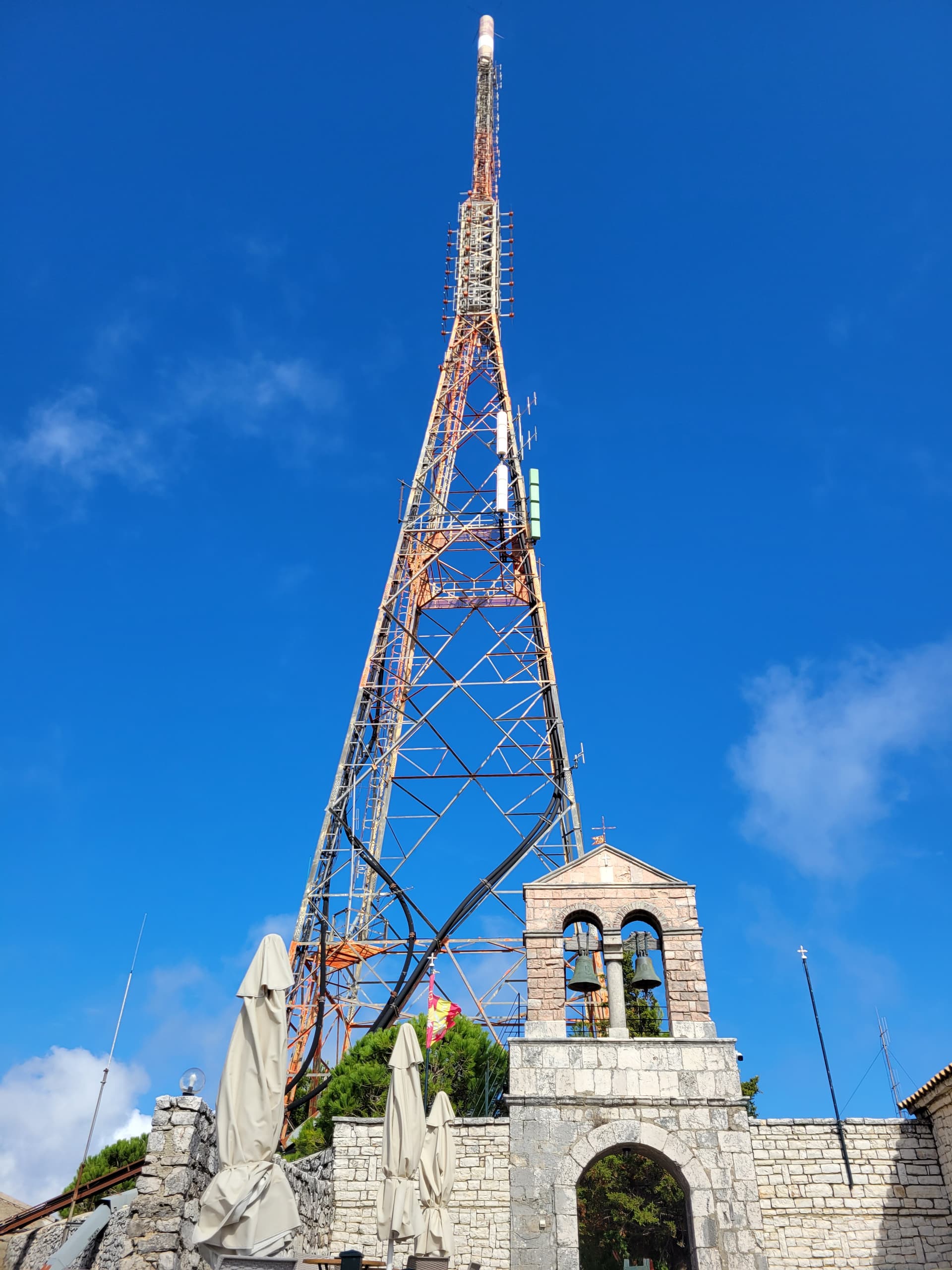 I was expecting the road and parking to be quiet at end of the holiday season. I was wrong! I did get a parking space high up, near the monestary, but only because someone else moved just as I arrived. I suspect parking could be a bigger challenge in summer. There are multiple commercial masts on the summit. I found some QRM, but it was workable.