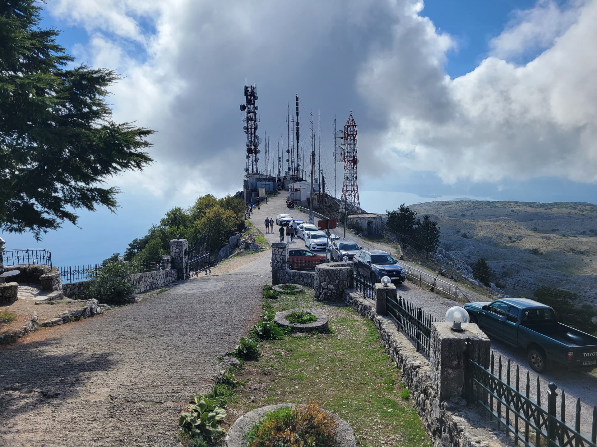 I got really lucky with this one - the track to the summit monestary was open. A careful drive got us to the top, leaving just a 5 minute walk. See sign below, sometimes it is chained off due to fire risk. It’s an “entertaining” track…. but as you can see below someone in a hired Fiat Panda managed it!