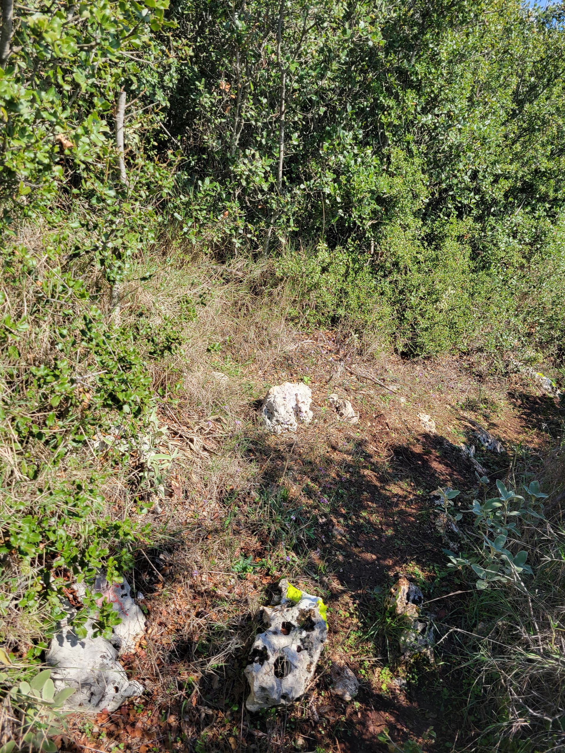 After reading other reports and conversing with Victor GI4ONL (thanks!) I found a good parking spot about 35 mins walk to the NW of the summit. It requires some care to find the final turn up a very narrow and partly overgrown side path to reach the summit. You also have to use your hands a bit to scramble up some small rock steps. Caution needed as the limestone is incredibly sharp and a slip would likely involve some serious cuts.