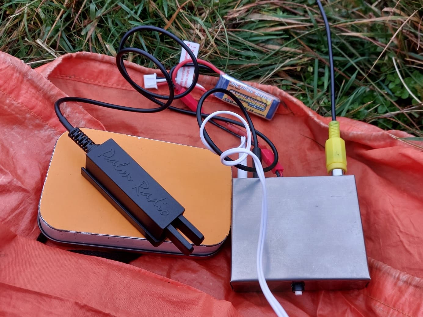 My standard RockMite 20 puts out about 330mW from a 12v supply and, in it’s Altoids tin case, weighs 81grams. I wanted to try to cut down some of that weight and get rid of the need of the heavy battery providing the 12v.