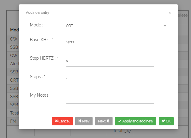 Here is my Frequencies&Modes configuration where you can see I’ve added a 1-step QRT mode and a 1-step TESTING mode: