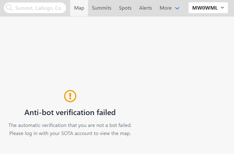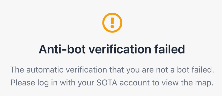 Users who are logged in with their SOTA account are exempt from the CAPTCHA verification, so if you see a message saying that anti-bot verification failed, simply log in and the map should display as usual.