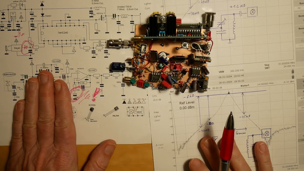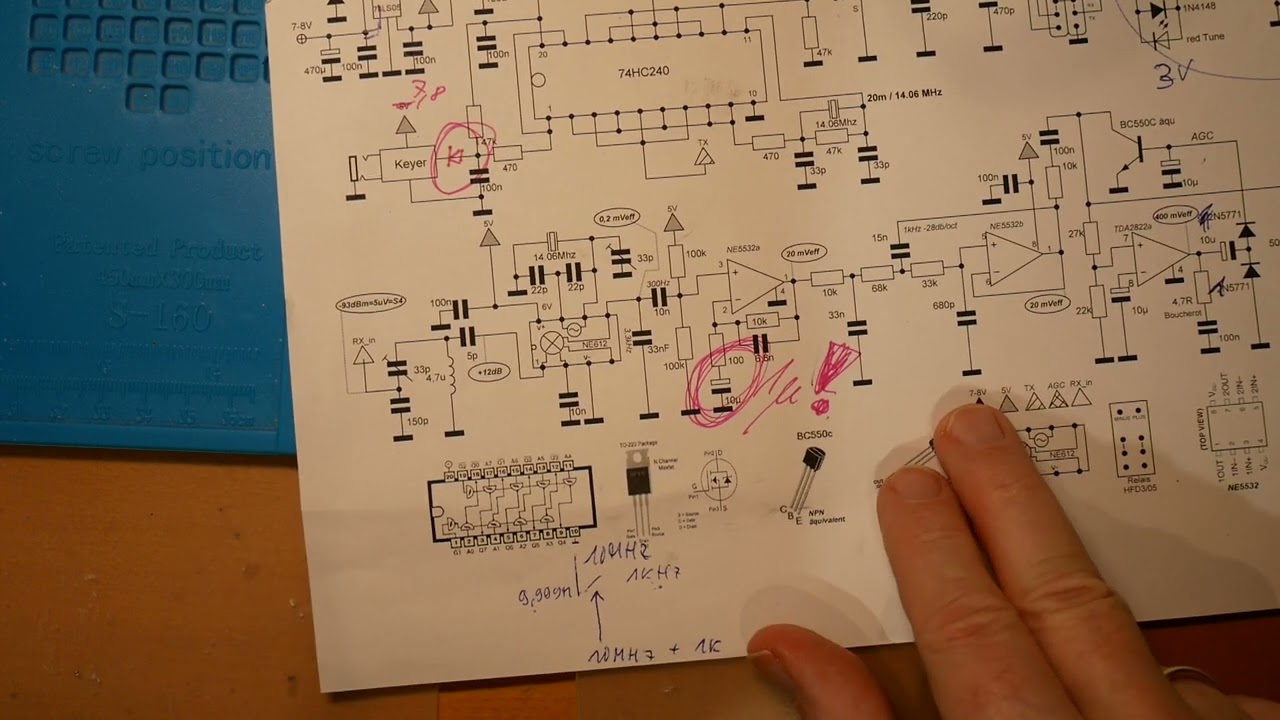 Applaud your concept! Clever design to use the 74hc 240 as oscillator and to control TR. Also, using separate crystals in Rx and Tx eliminates the usual 600Hz Tx offset crystal pulling.