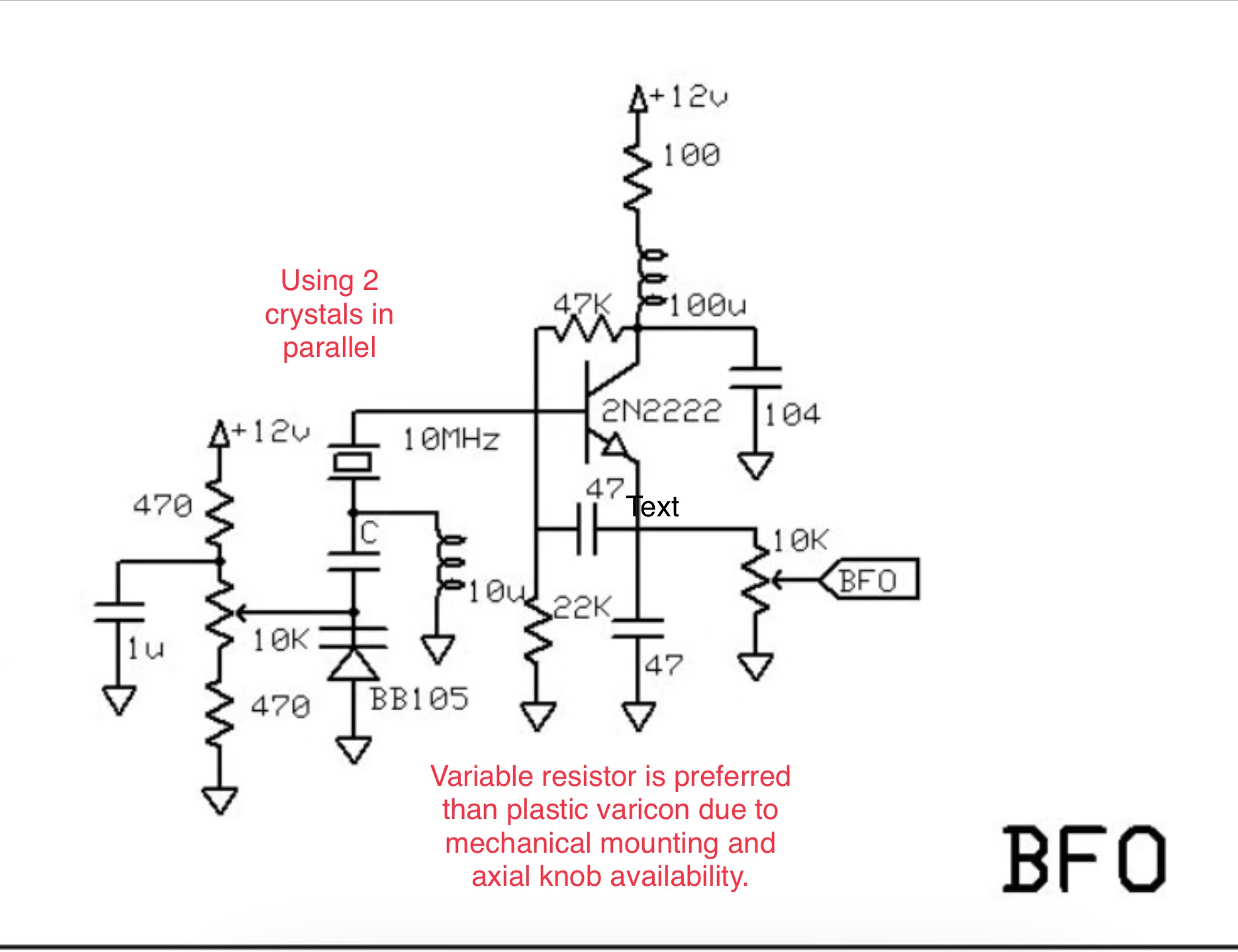 Very simple design, except the VFO is using varicap, that I might replaced with a “Mixer-VXO” http://g4oep.epizy.com/mixervxo/mixervxo.htm?i=1 claimed 50kHz pulling!