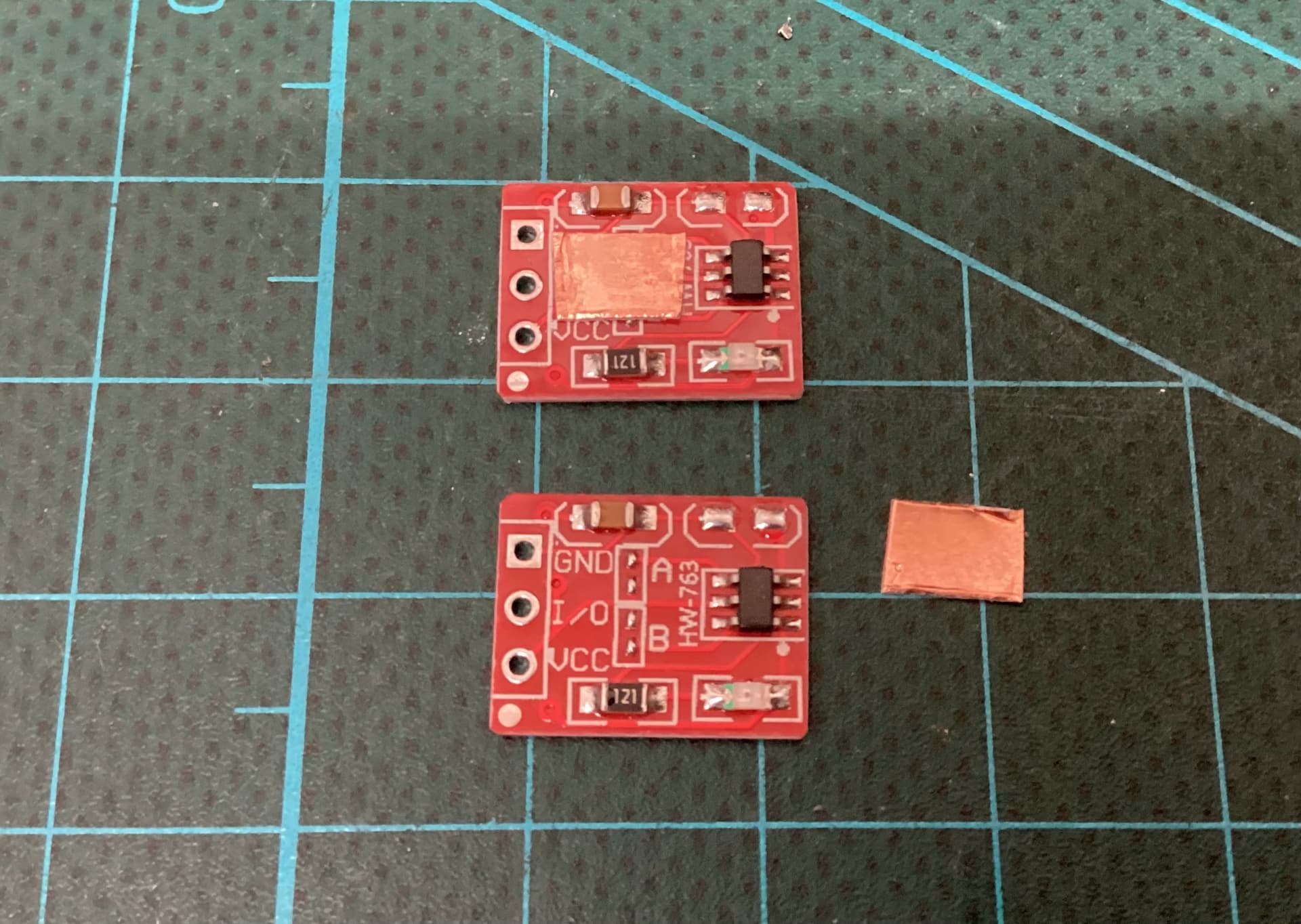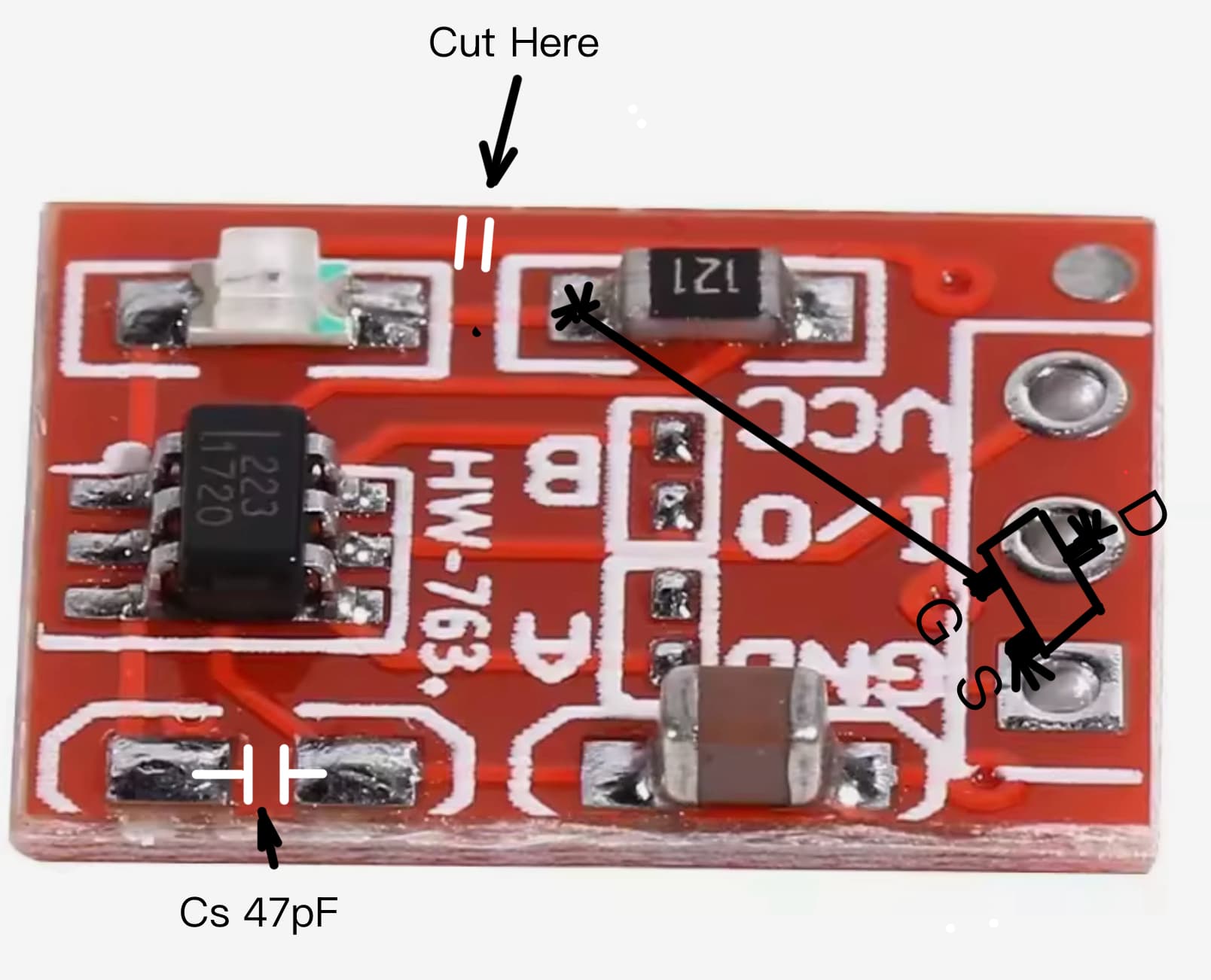 I am going to build an EFHW antenna for testing my modified TTP223 paddle with ground plane to the Pad Sensor, bypassed capacitors mounted very close to the 223 Vcc pin and a Faraday cage for shielding and acting as a Cs capacitor.