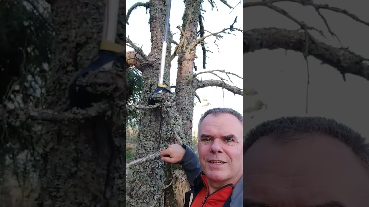 Of course, I’ve done the same thing a number of times (first two photos). But on several summits around here, I wanted to set up away from tall trees, or didn’t have any tall tree. Usually, I had waist-height low trees but they are not strong enough to support Carbon6 under wind by themselves. One ground stake and loosely tying to the low tree worked well (last two photos).