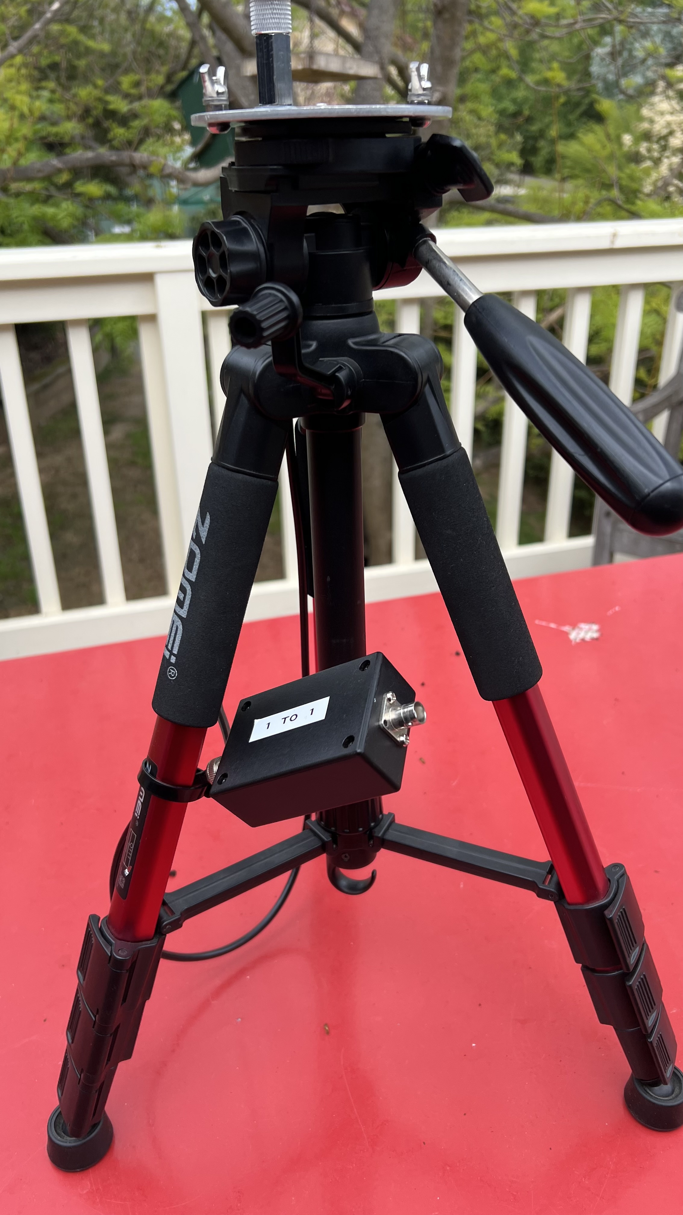 The antenna Iām standing next to is my version of the POTA-Performer, hastily built on Friday, including modeling and 3d printing a Arca-Swiss compatible dovetail mounting plate for the tripod.