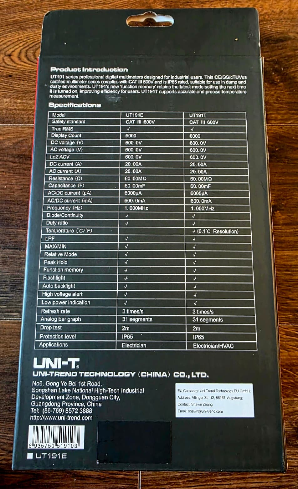 There is a 191T version which has temperature probes but it’s a bit more expensive. The 191 series seems to be well received and is a good bit cheaper than the 161E I had my eye on. I’ve had a Uni-T DMM in the past which served me well for a number of years before I stupidly blew it up by not knowing what I was doing and trying to measure something it wasn’t capable of.