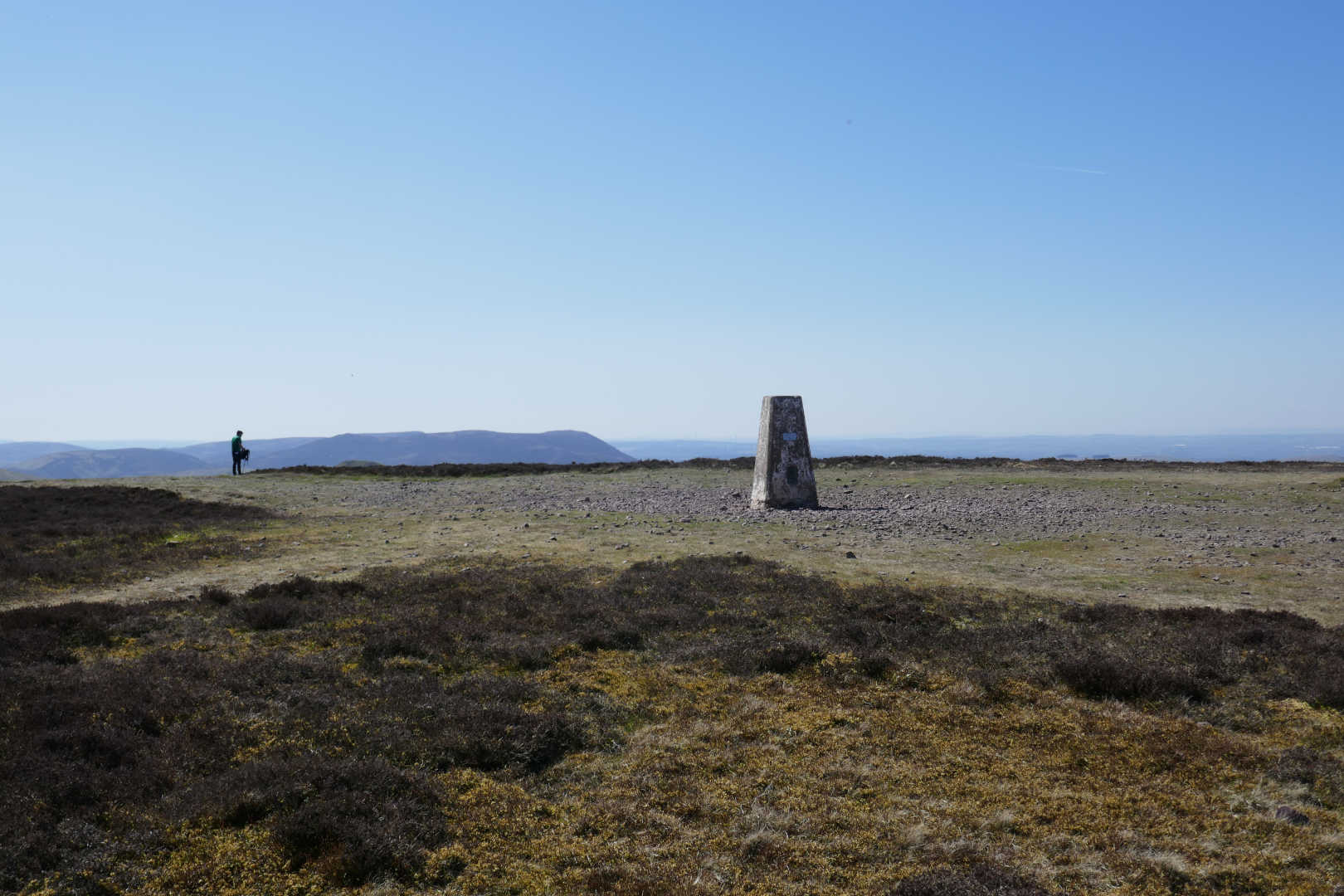 East Cairn Hill GM/SS-282 is the hill to the left of the trig with the 45deg slope. To the right of the trig is looking towards Ben Lomond/Loch Lomond direction.