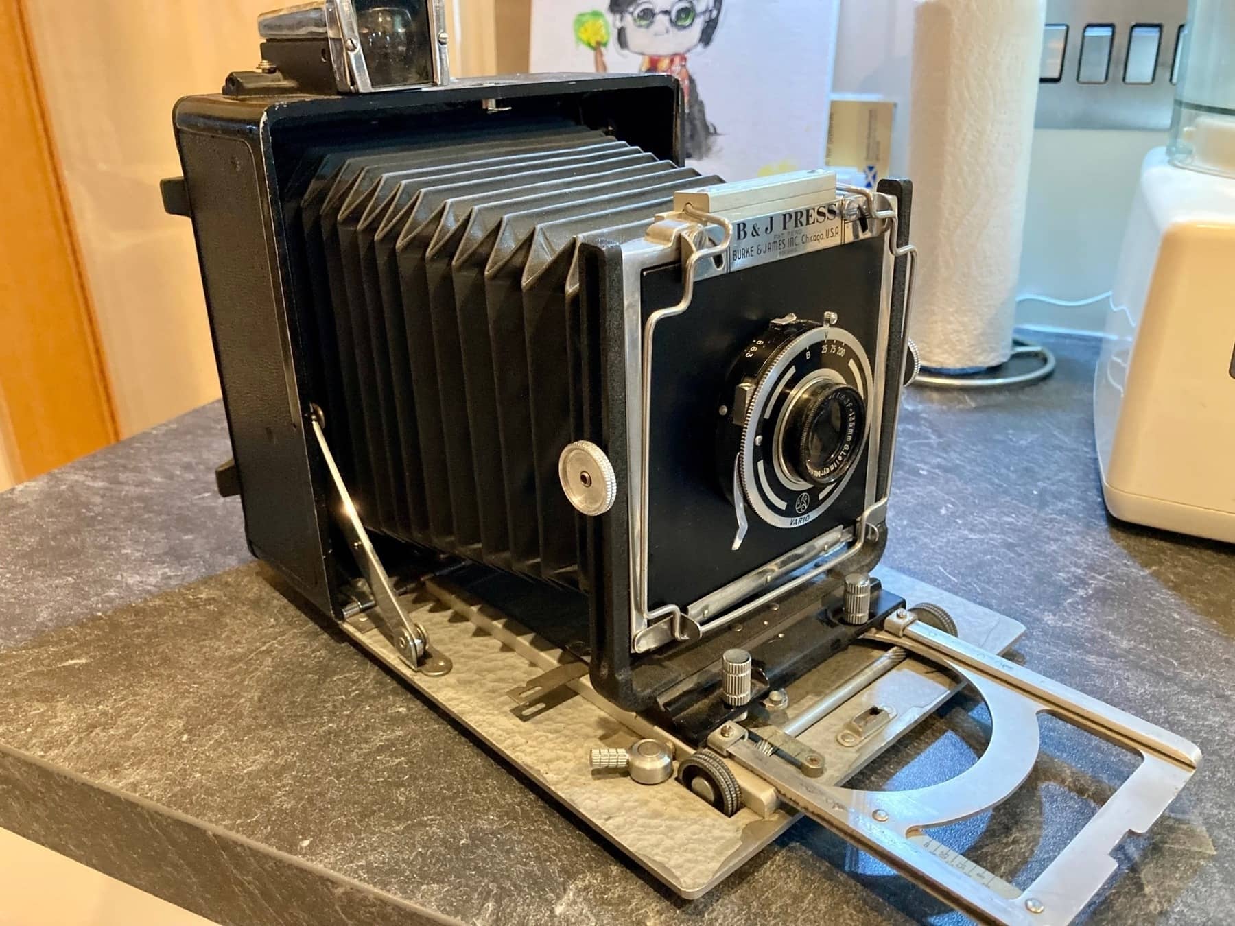 I tried large format once (for when 120 is too many exposures). A friend gave me his B&J press camera and I bought some random B&W ISO 400 sheets. After the faff of taking a photo I then had to develop it in trays. I thought the bathroom with no windows in the spare room would be suitably dark, however, after being in it in the dark for 30 minutes I could see no end of light coming through the door.