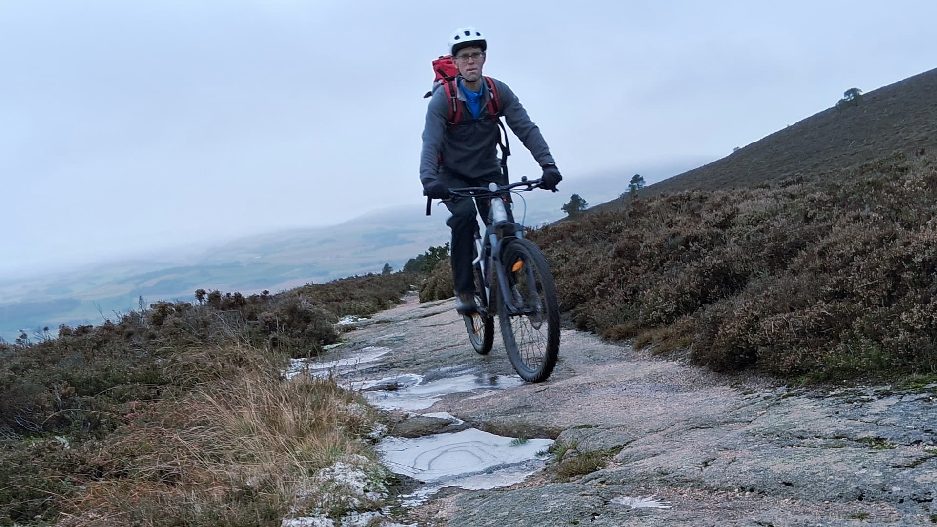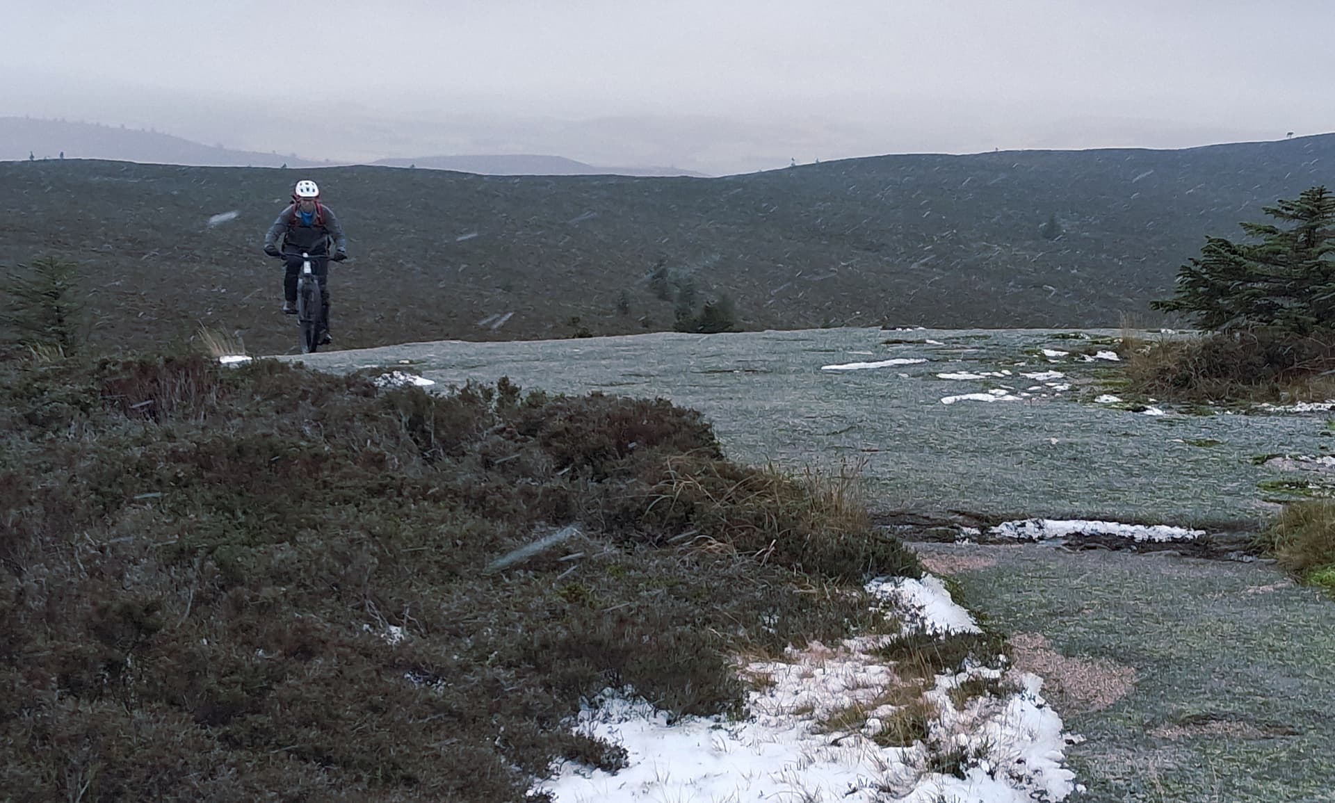 It’s a steep slog up deep heather from the north and from the south east. From the south west it’s 10km of forest roads and mountain bike trail, part of the Pitfichie Trail Centre. I suggested the bike trail, not really sure how bad the snow would be.