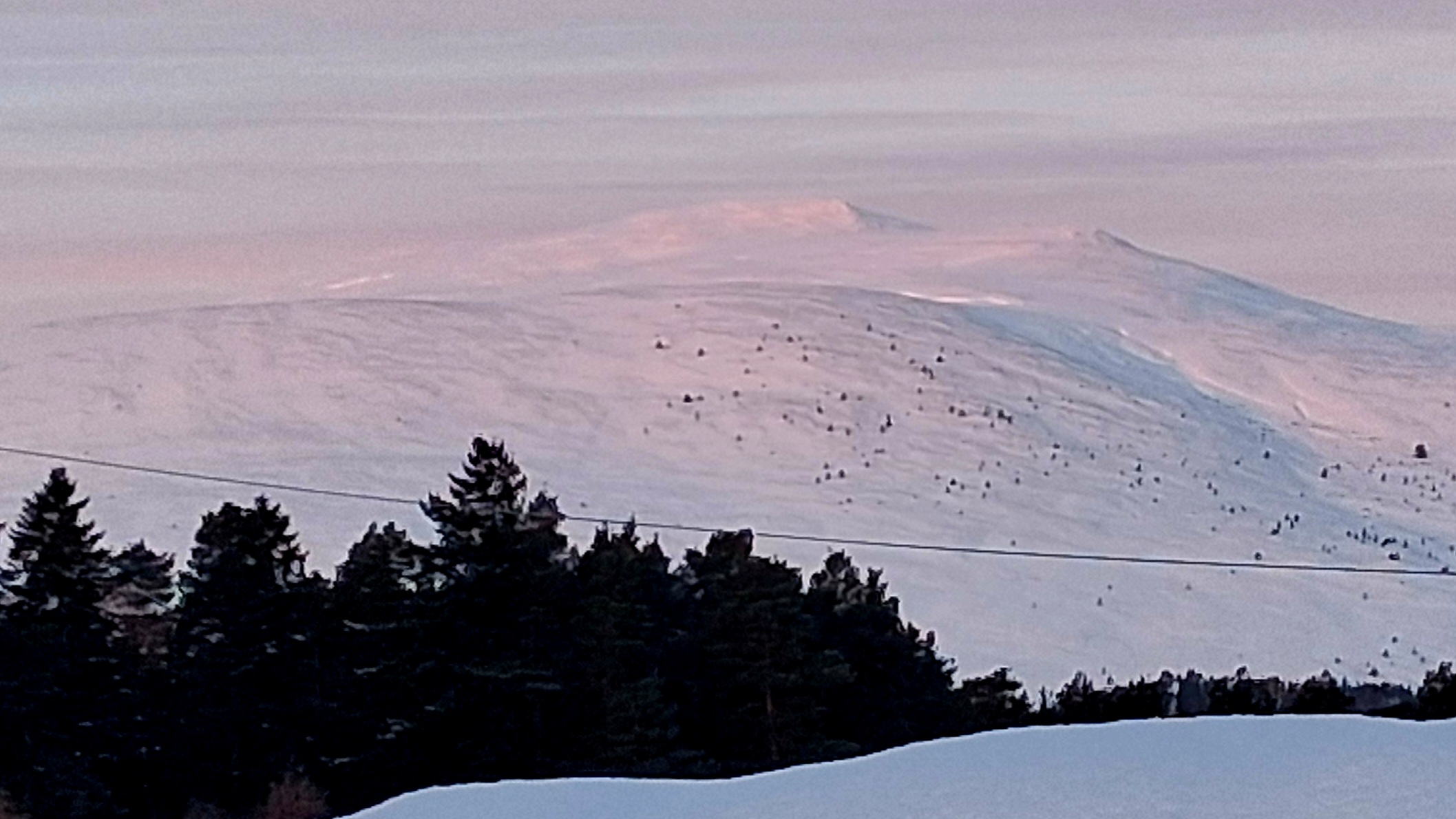 1km from the top, with snow moving in from the north