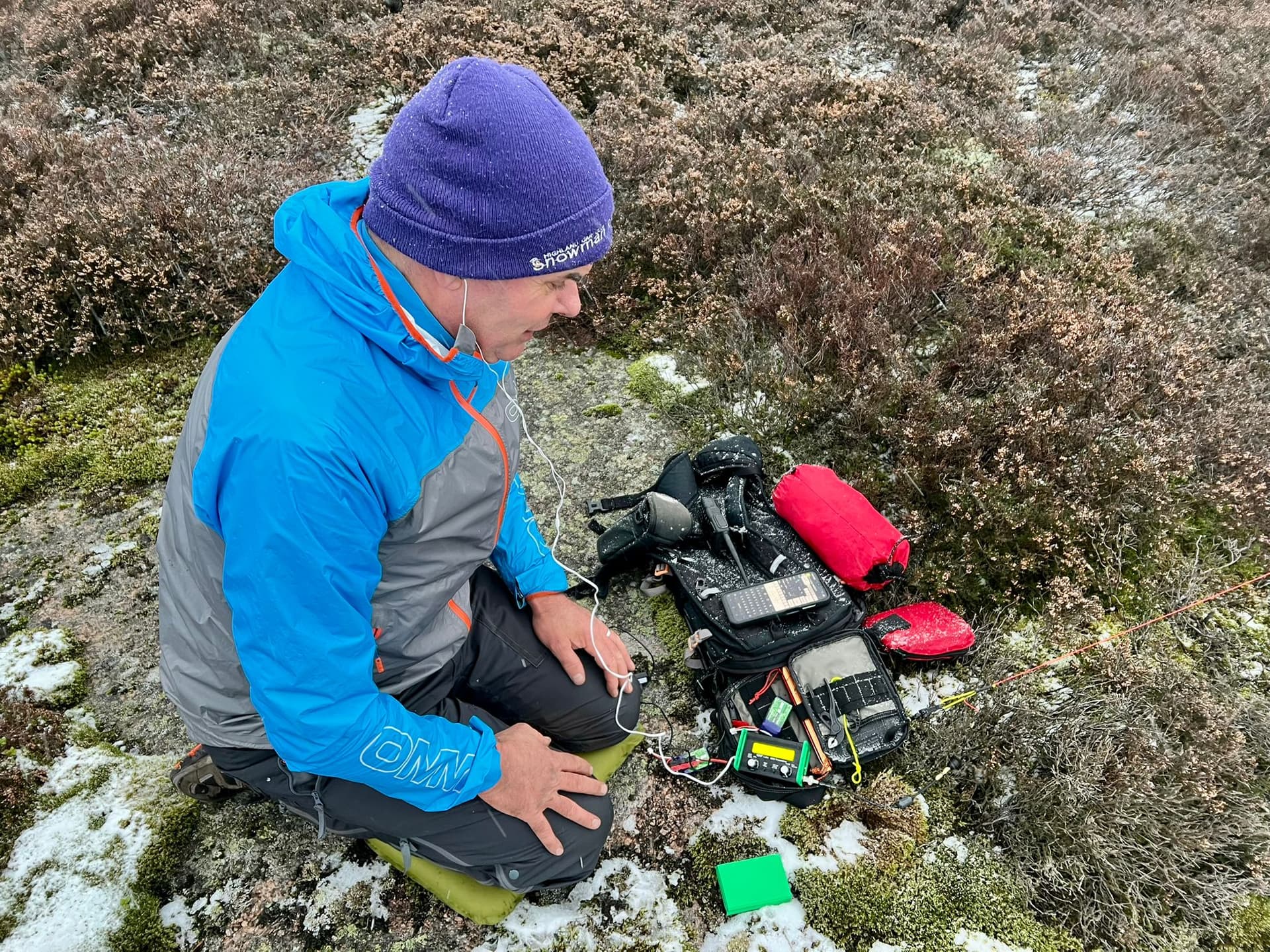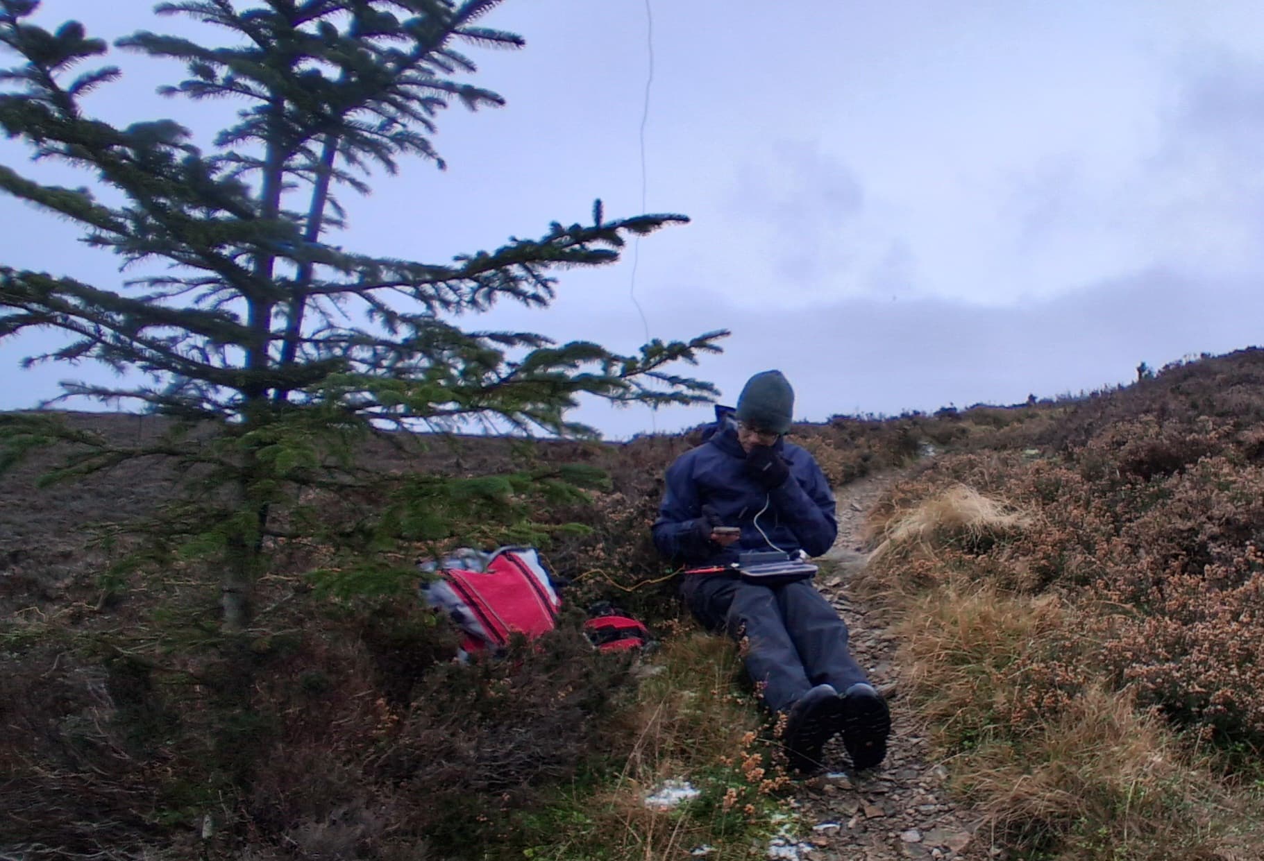 We’d primed our friends, and hoped we’d manage a couple of quick QSO’s on 2m FM before moving to HF. Surprisingly, the first couple of calls weren’t Chris @2M0RVZ or Simon @GM4JXP. Well, Chris should have been first but he couldn’t get his radio to work, or the second one he tried. By now it was snowing, and Alex and I were passing the HT back and forth talking to the chasers. Eventually, Chris, who was now on his third radio, made our logs. You’ll not often hear us complaining of too many callers on 2m FM around these parts, but it was blowing snow and we were itching to get on to HF.