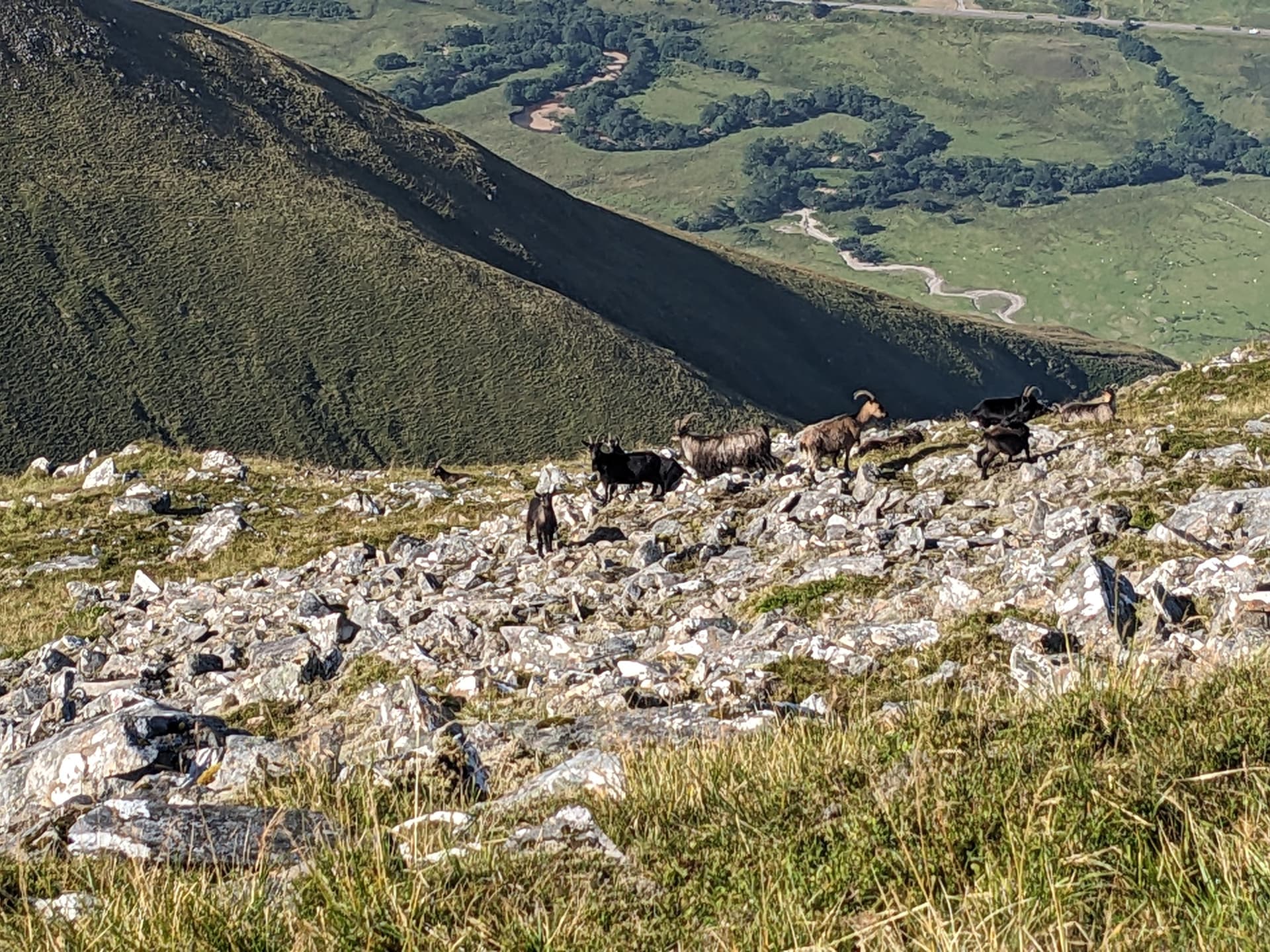 I was about now that I ran out of drinking water - 2 litres gone…another few km of ridge before any descent. Up and down a few final little lumps. //rant on// Saw a chap at the top of a scramble (near the end of my direction of travel - the start of his! - he was hesitant to come down. I climbed up and talked with him. He declined to climb down and was looking for a bypass route - there isn’t one, “do you want me to spot you down?” “no - I’ll find a bypass - what’s the bit after this like?” - Excuse me but it’s a ridge with known and publicised scrambling involved - what are you doing out on it alone if you can’t cope? It was also about 18:00h so he’d a few hours of daylight left, but at his pace he’s probably still up there…yes enjoy the hills, but be a bit sensible about it! //rant off//