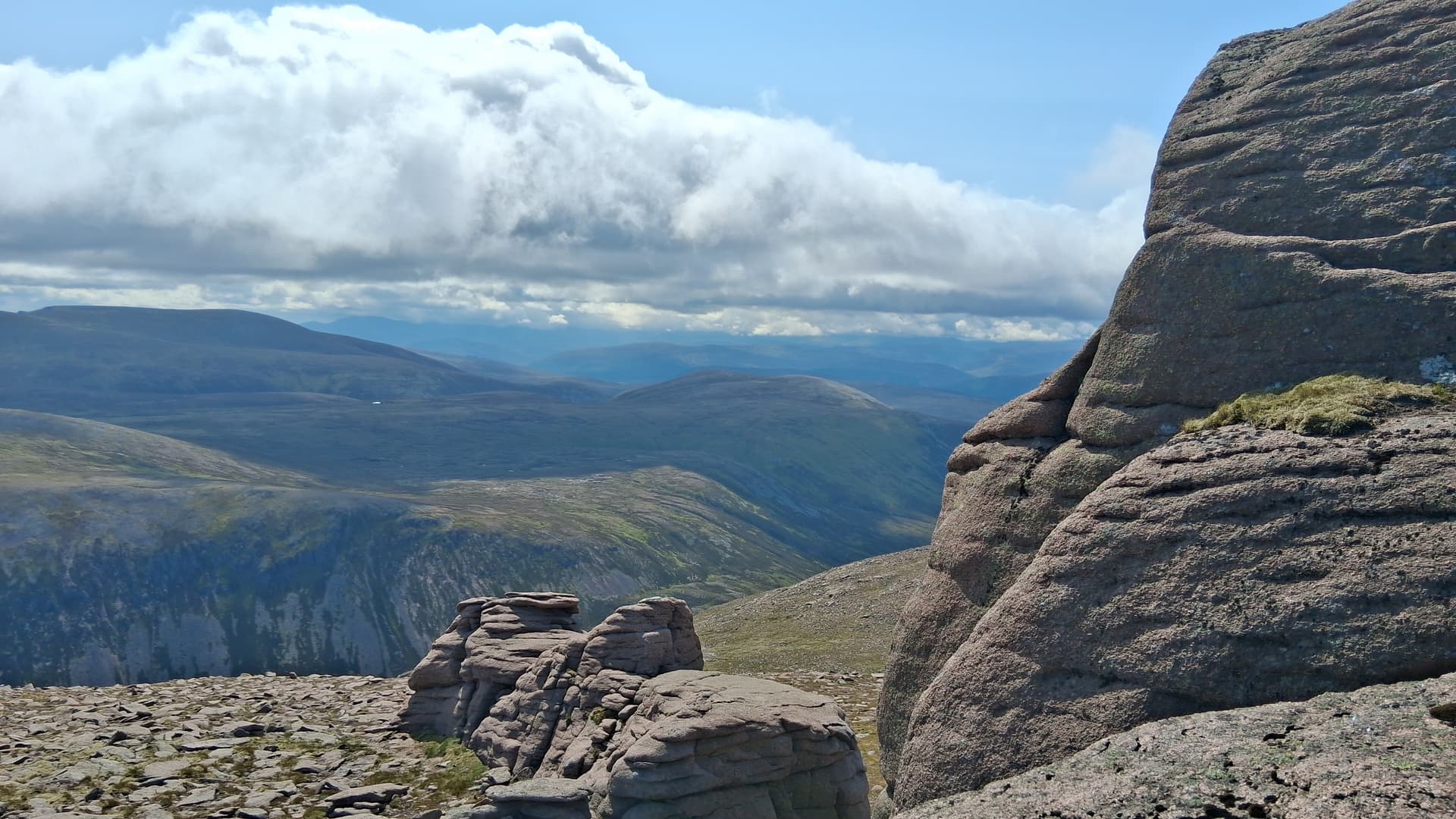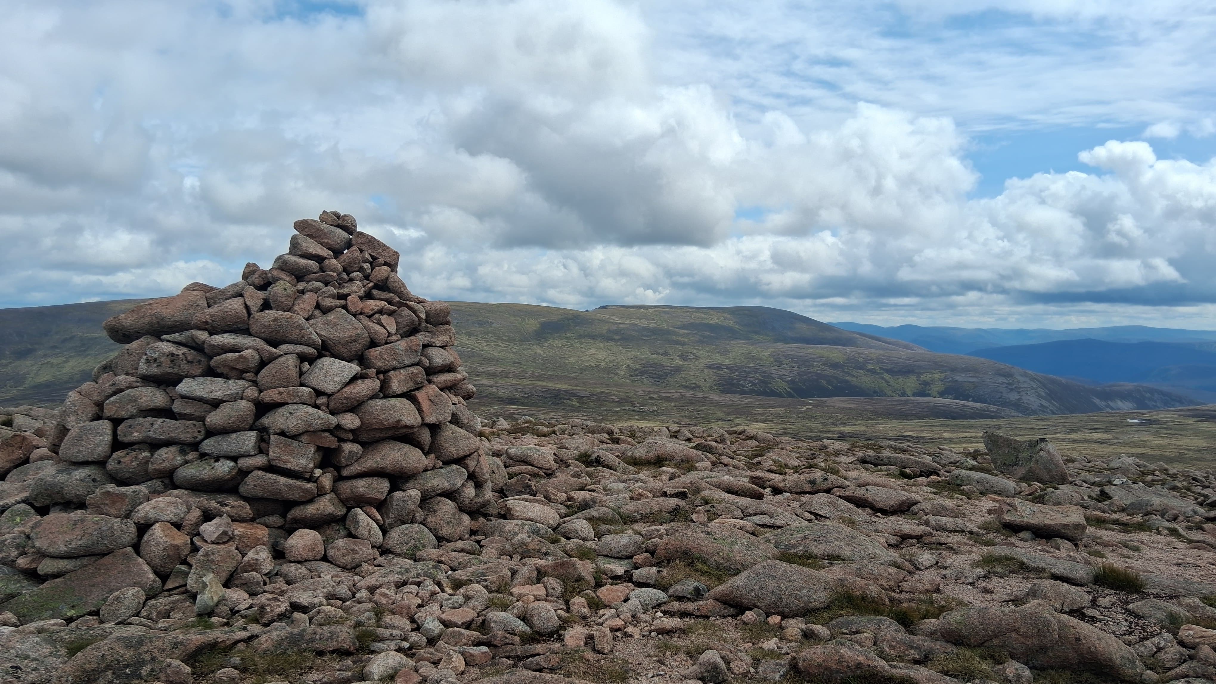 The clouds were clearing and things were looking better. A quick stop on Devil’s Point to admire Ben Macdui, before moving on.