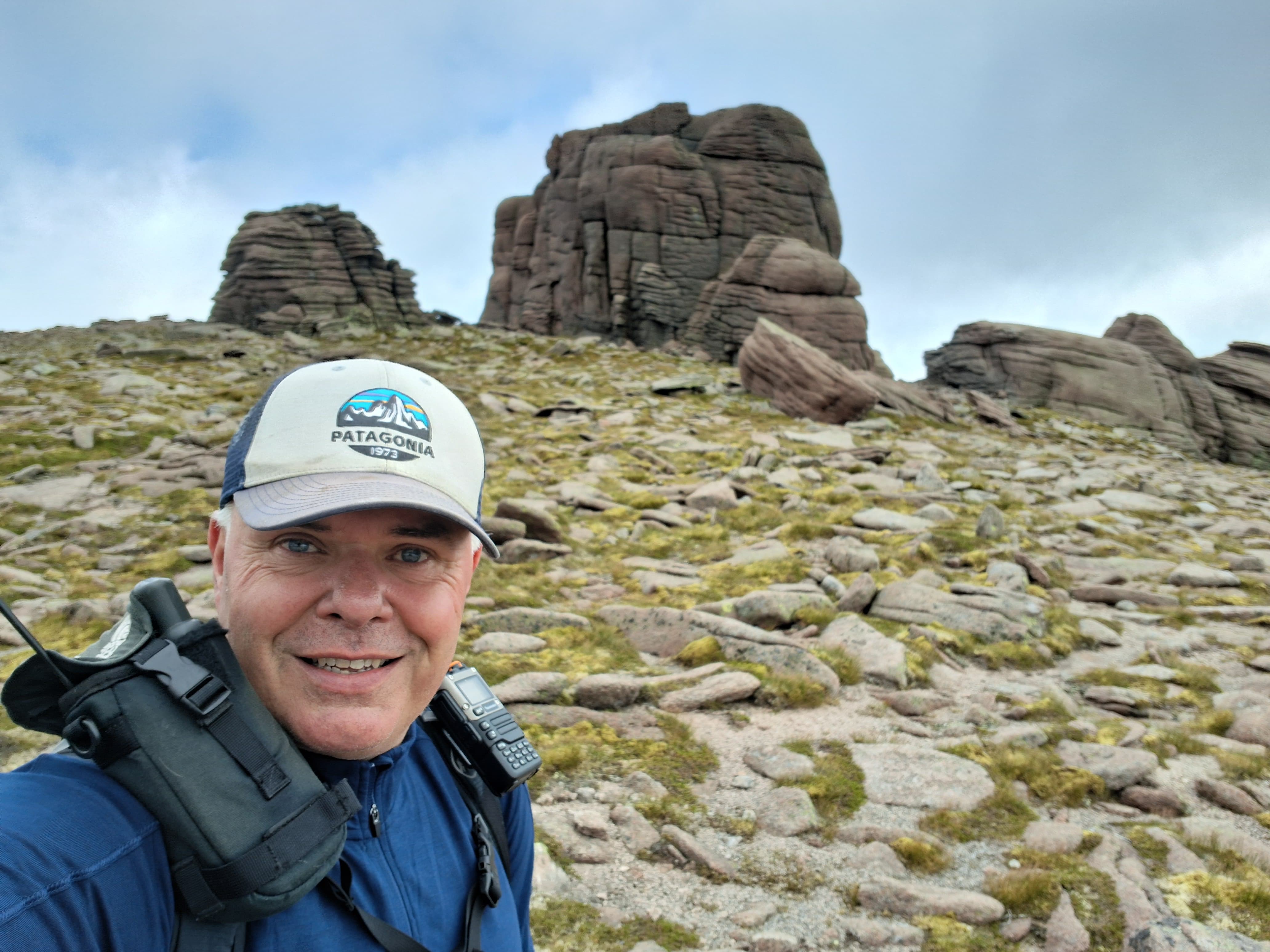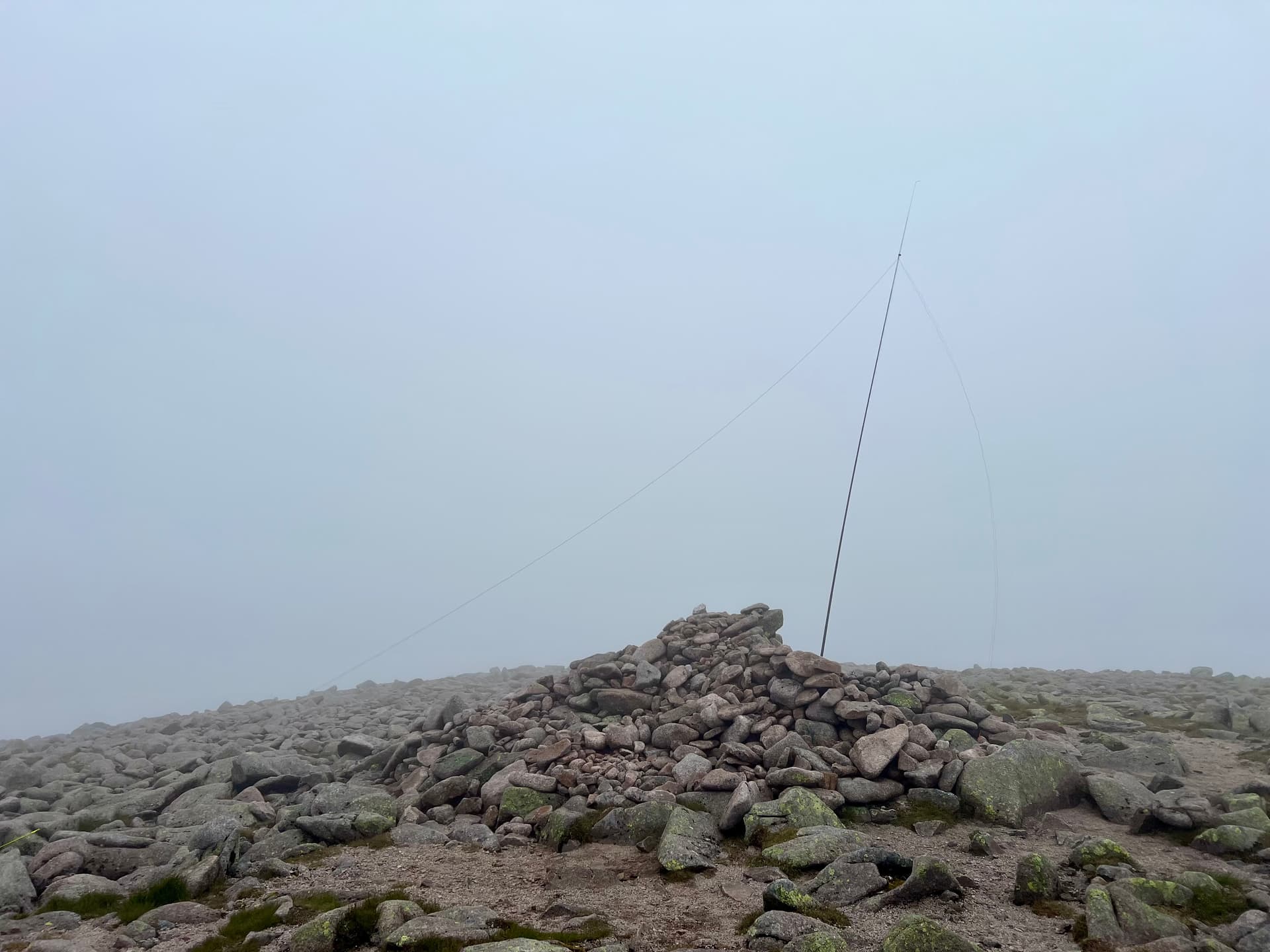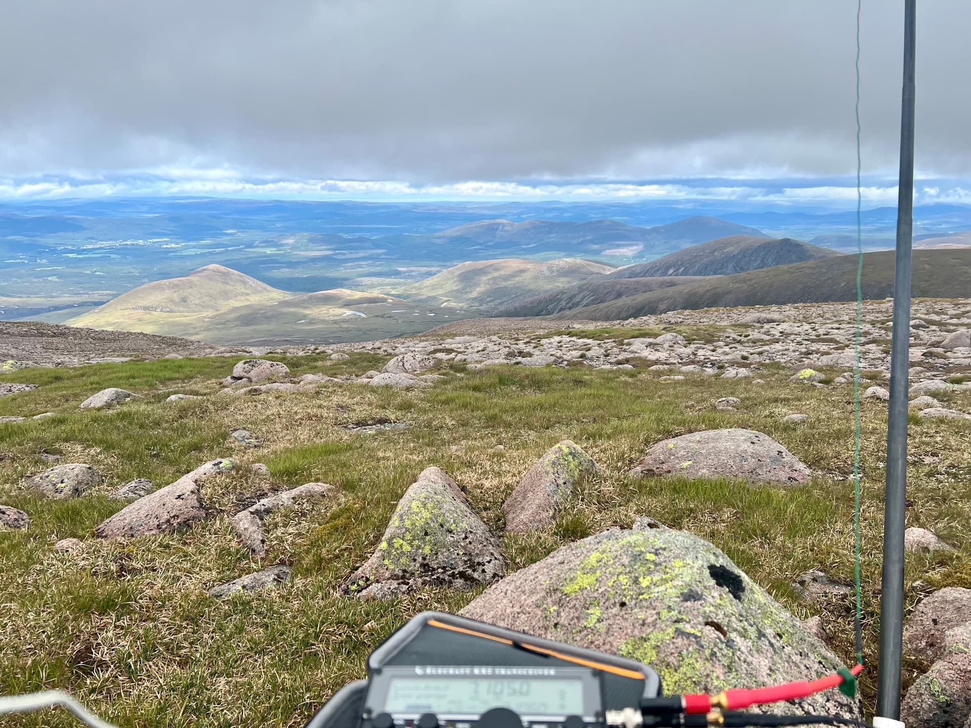 Station was setup behind some of the rocks, although the wind still whipped around. I’d just setup for HF when Fraser said he was ready with 2m from a strategic high point, and so I put out a call and Jack, GM4COX, was right there! A quick run of 4 on 2m, and then back to HF. 40m was a struggle but 20m was okay. I hung about for Denis @MW0CBC to setup on GW/NW-009 for a S2S. Then off to the next summit, Creag Mhor.
