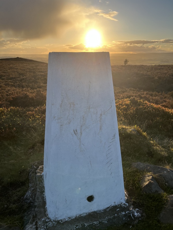The ascent had taken 50 minutes and it was gone 5pm: would there be any chasers about? There was no shelter, so Caroline again used the trig point to support the antenna, while Martyn set up HF in the heather nearby. 60m wasn’t in good shape and after Martyn had managed only one contact he asked Caroline how she was getting on – she had two on 2m: David G0EVV and Derek G1ZJQ. Martyn worked David on 2m, and then Derek on 70cms after Caroline had moved there. That was it for VHF and 60m despite further attempts, so we moved to 40m, both working the first two contacts and then Caroline running for 8 contacts. Martyn had needed to use 4 different bands to qualify the hill! While we had been operating, we had seen partial rainbows, but had remained dry throughout.